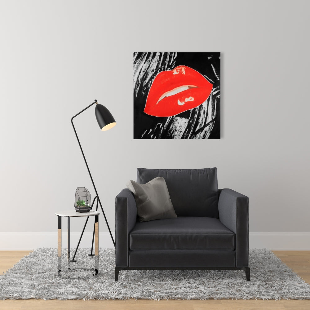 Keywords: Bedroom Retro Black Canvas, Kissable Glossy Lips, Black Background, Home Decor, Vintage Glamour, Modern Interiors, Art Collection, Chic, Sophisticated, Vibrant Display, Focal Point, Conversation Starter, Timeless Appeal.