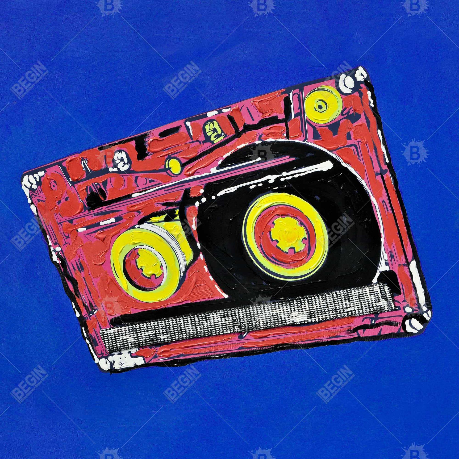 Contemporary Musical Blue Canvas - Tape Player Home Decor