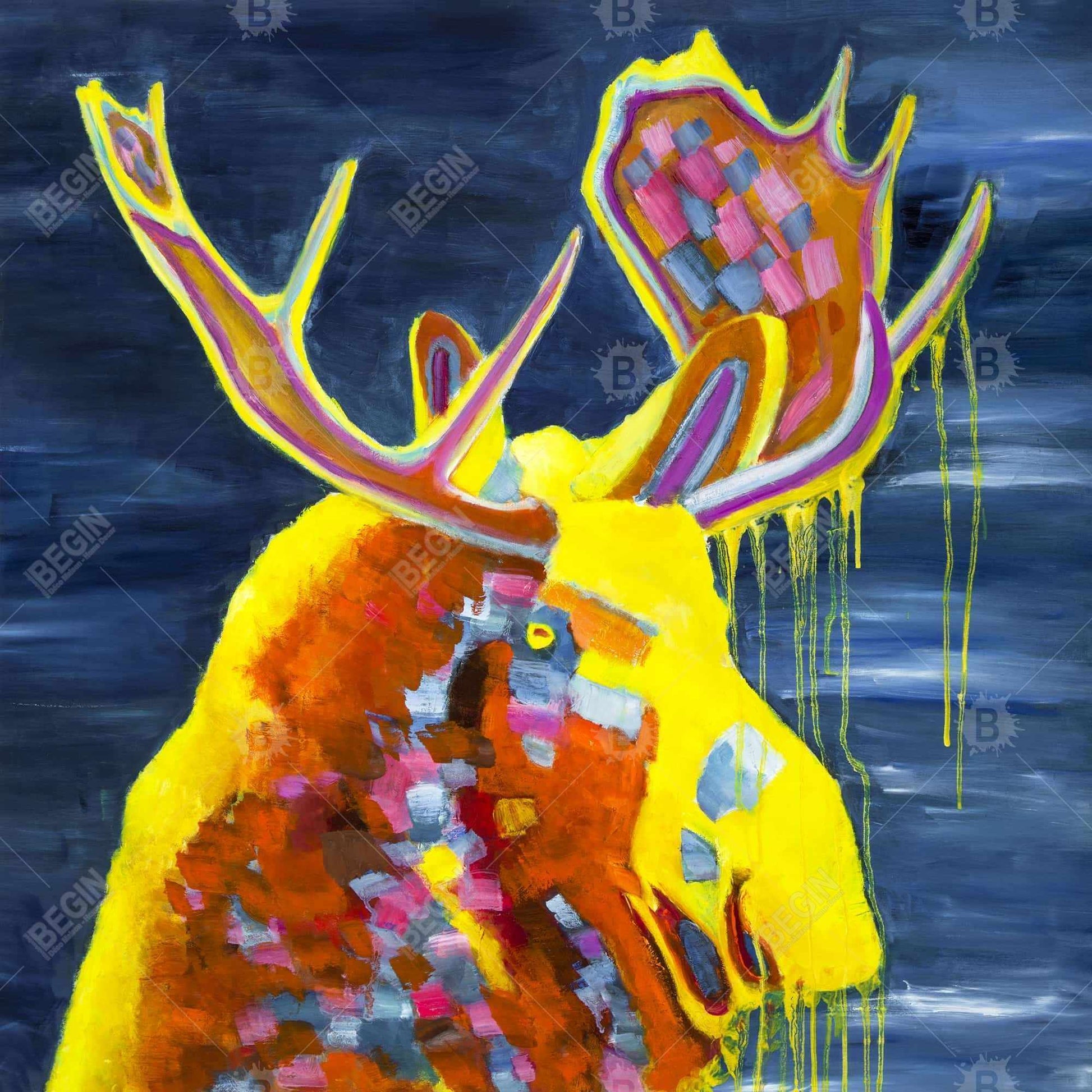 Colorful Moose Canvas | Deer Bedroom Decor | Wall Art