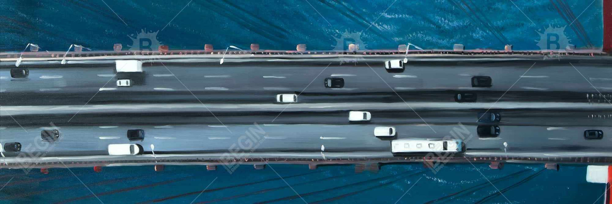 Overhead View Traffic Golden Gate Canvas - Sea Blue Decor