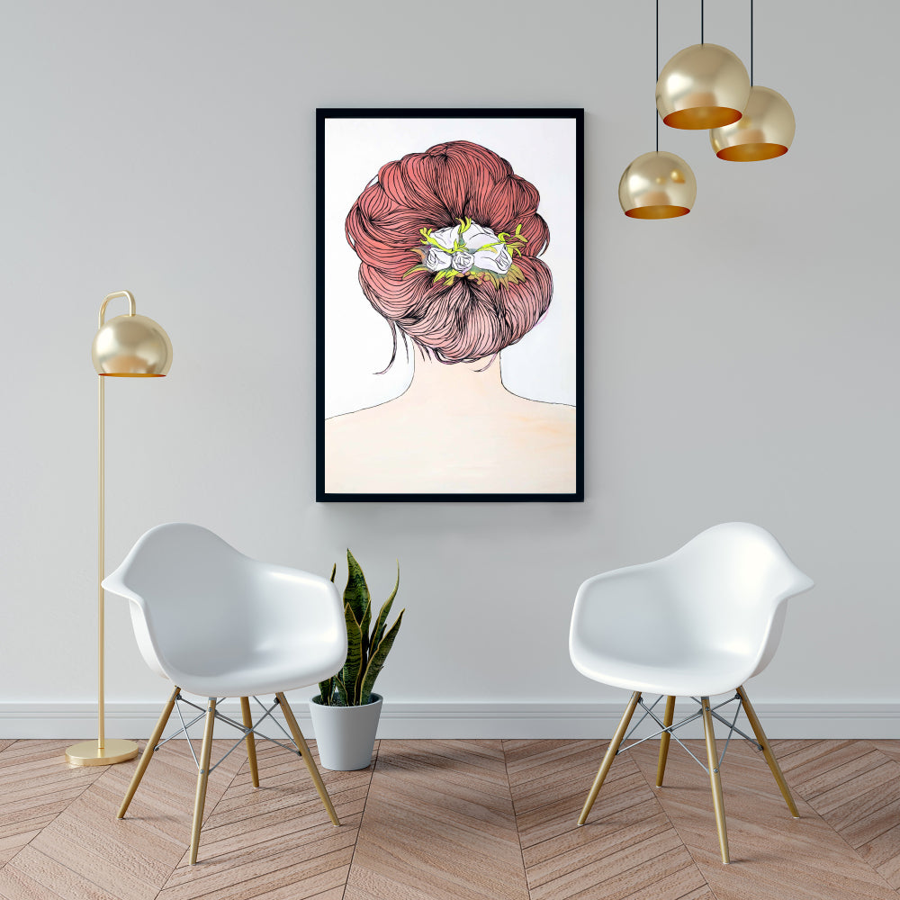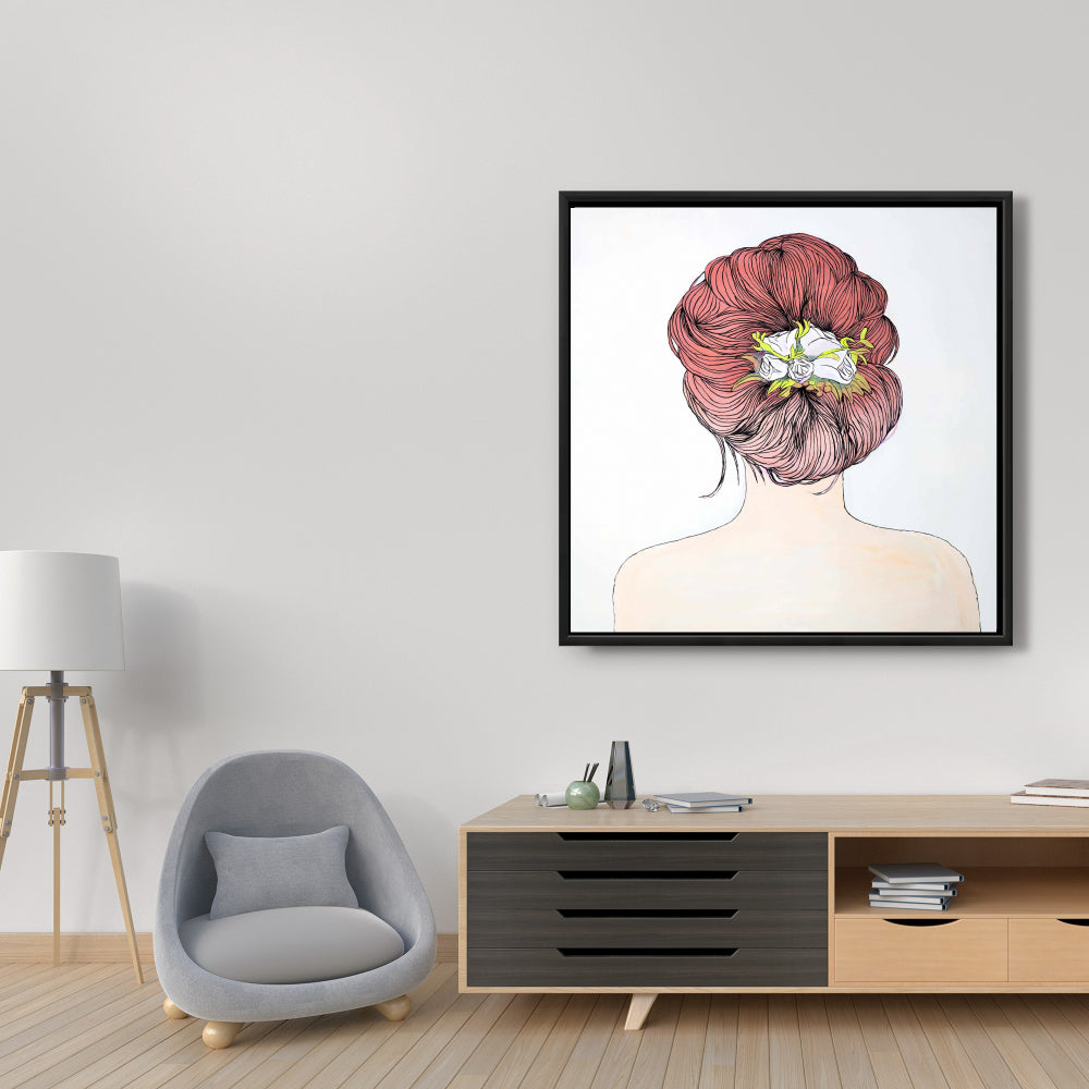Lady with Flowers in Her Hair | White Framed Canvas Decor