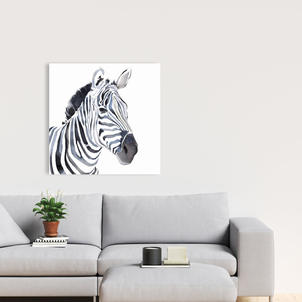 Watercolor Zebra Canvas - Blue Bedroom Animal Decor Wall Art