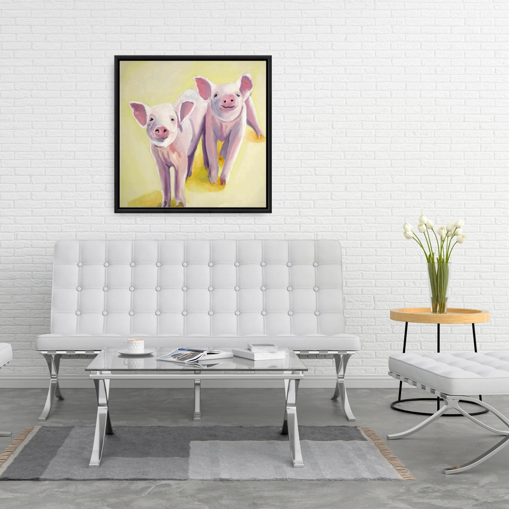 Yellow Animal Canvas - Two Smiling Pigs Framed Wall Art Decor