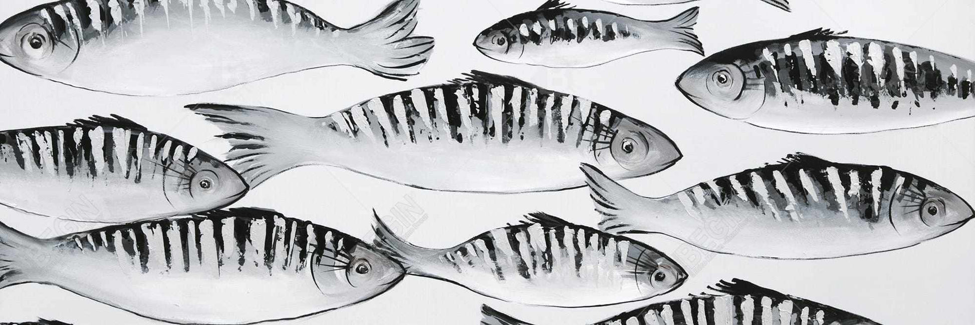 Gray Shoal of Fish Canvas | White Aquatic Decor for Bedroom