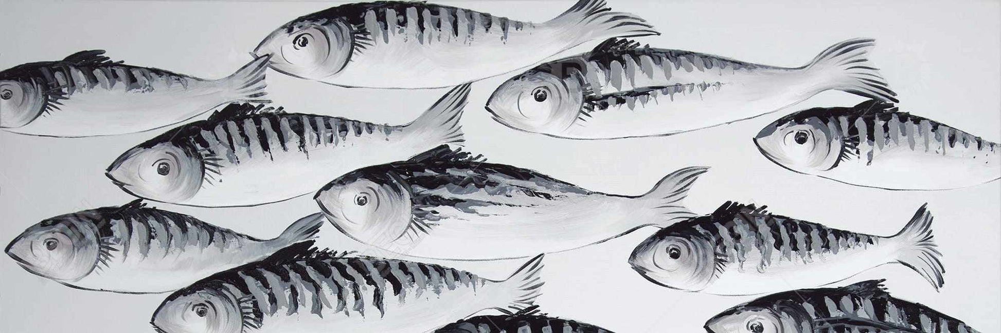 White Bedroom Canvas - Gray School of Fish | Home Decor Art
