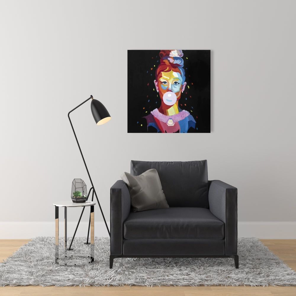 Enhance your living space with our striking Blue Woman Modern Canvas featuring a colorful portrait of Audrey Hepburn with bubblegum. This vibrant artwork effortlessly combines classic elegance with a playful pop art twist, making it a captivating focal point for any room. Perfect for home decor enthusiasts, this canvas brings a splash of color and iconic charm to your walls. Crafted with high-quality materials, the vivid hues and intricate details ensure long-lasting beauty. Ideal for living rooms, bedrooms, or offices, this artwork adds a touch of sophistication and whimsy to your interior design. Whether you're a fan of Audrey Hepburn or simply love unique art pieces, this canvas is a must-have. Transform your home decor with this blend of modern style and timeless allure.