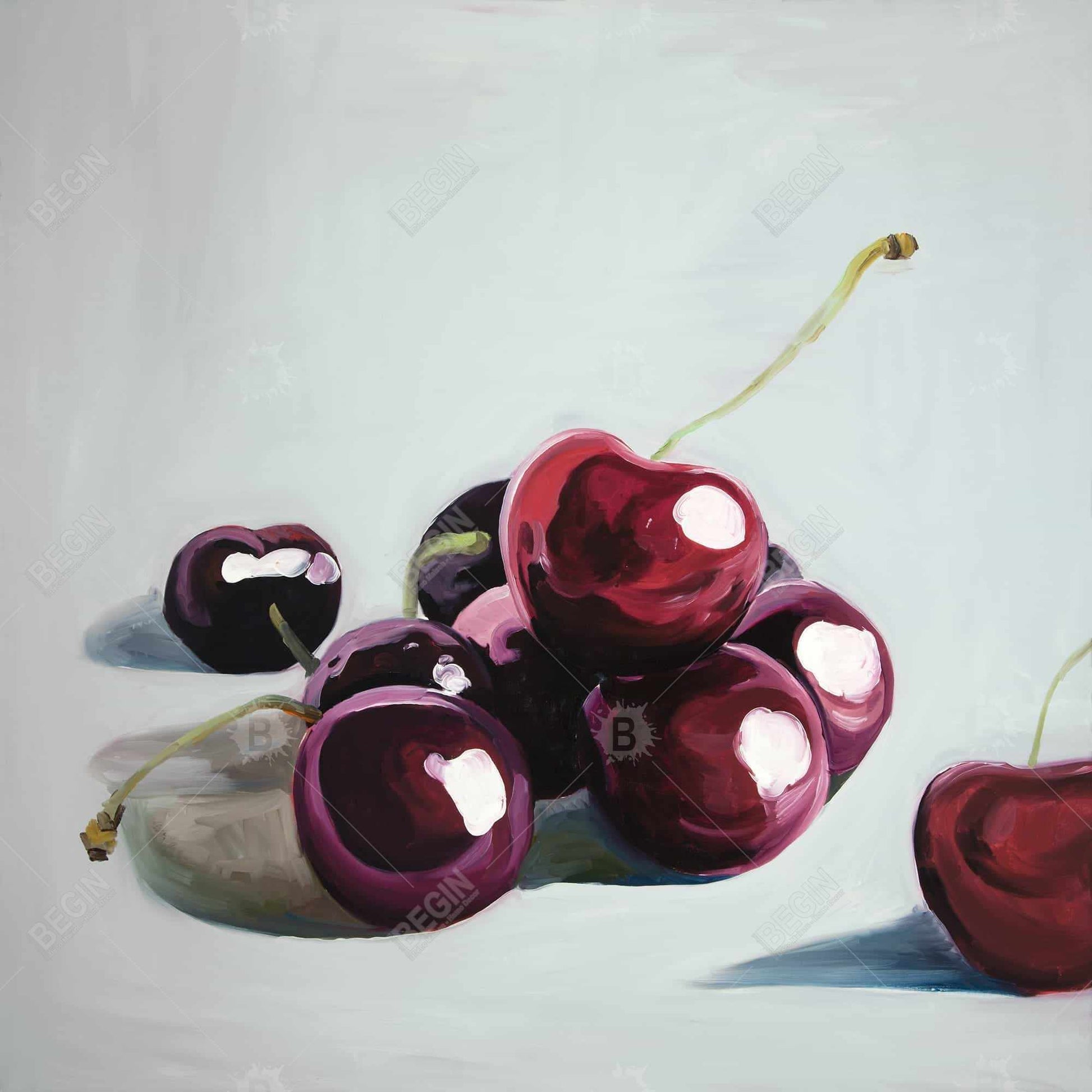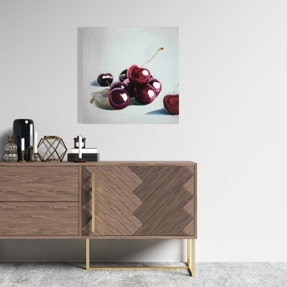 Glossy Dark Cherries Kitchen Canvas | White Gastronomy Decor