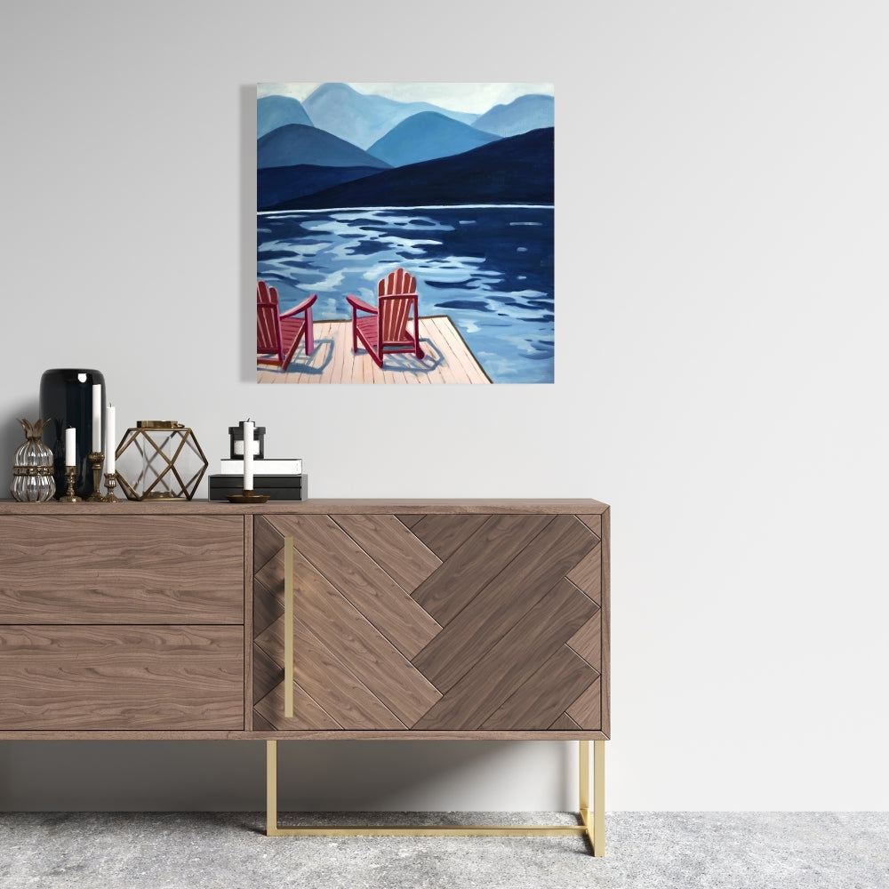 Transform your living space with our Bedroom Marine Mountains Canvas featuring a serene landscape of a lake, dock, mountains, and chairs. This stunning piece of home decor is perfect for creating a tranquil and inviting atmosphere. Its vivid depiction of nature's beauty combines the calming elements of water, majestic mountains, and rustic wooden chairs that evoke a sense of peace and relaxation. Ideal for any bedroom, this canvas art brings the outdoors in, offering a perfect blend of nature and elegance. Crafted with high-quality materials, it ensures durability and lasting vibrancy. Whether you're looking to enhance your home decor or searching for the perfect gift, this canvas is a timeless choice. Easy to hang and maintain, it adds a touch of sophistication to any room. Elevate your interior design with this beautiful marine mountains canvas and enjoy the serene ambiance it brings. Perfect for nature lovers and those seeking to create a peaceful retreat in their home.