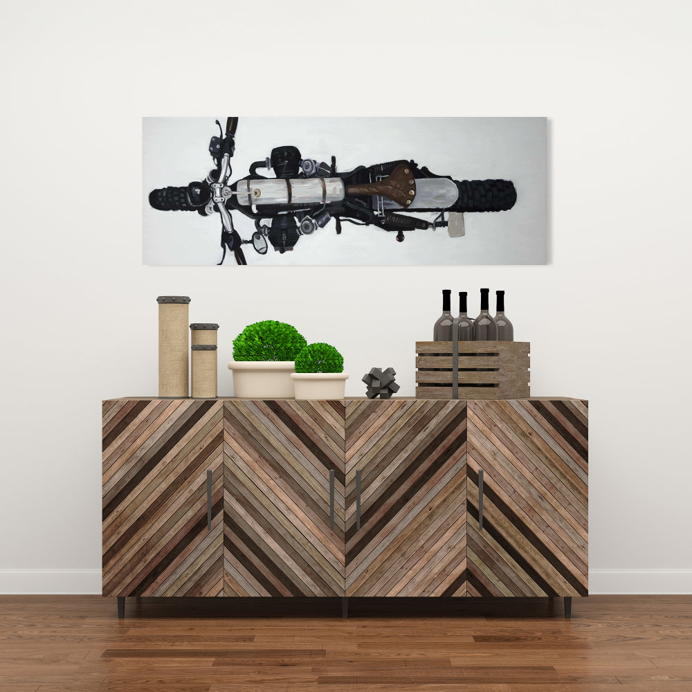 Enhance your home decor with our stunning "Overhead View of a Motorcycle" white canvas. This captivating wall art piece offers a unique perspective, perfect for motorcycle enthusiasts and art lovers alike. Crafted with high-quality materials, the canvas delivers vibrant colors and intricate details, bringing the thrill of the open road into any room. Ideal for living rooms, bedrooms, or offices, this motorcycle decor piece adds a touch of adventure and modern style to your space. Easy to hang and maintain, it seamlessly complements various interior designs, from contemporary to industrial. Whether you're a passionate rider or simply appreciate the beauty of motorcycles, this overhead view canvas makes a bold statement and a great conversation starter. Order now to elevate your home atmosphere with dynamic motorcycle art.