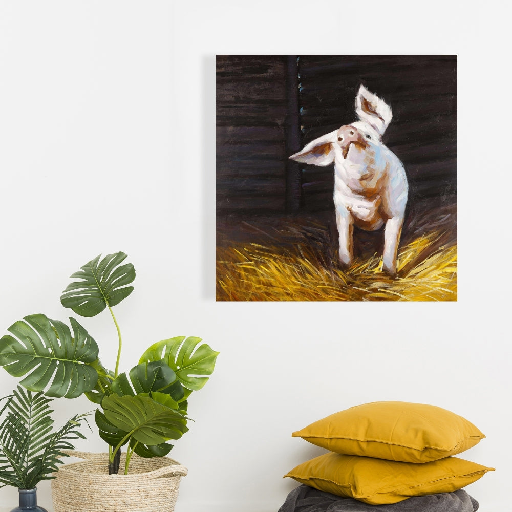 Happy Pig Canvas | Contemporary Animal Bedroom Decor