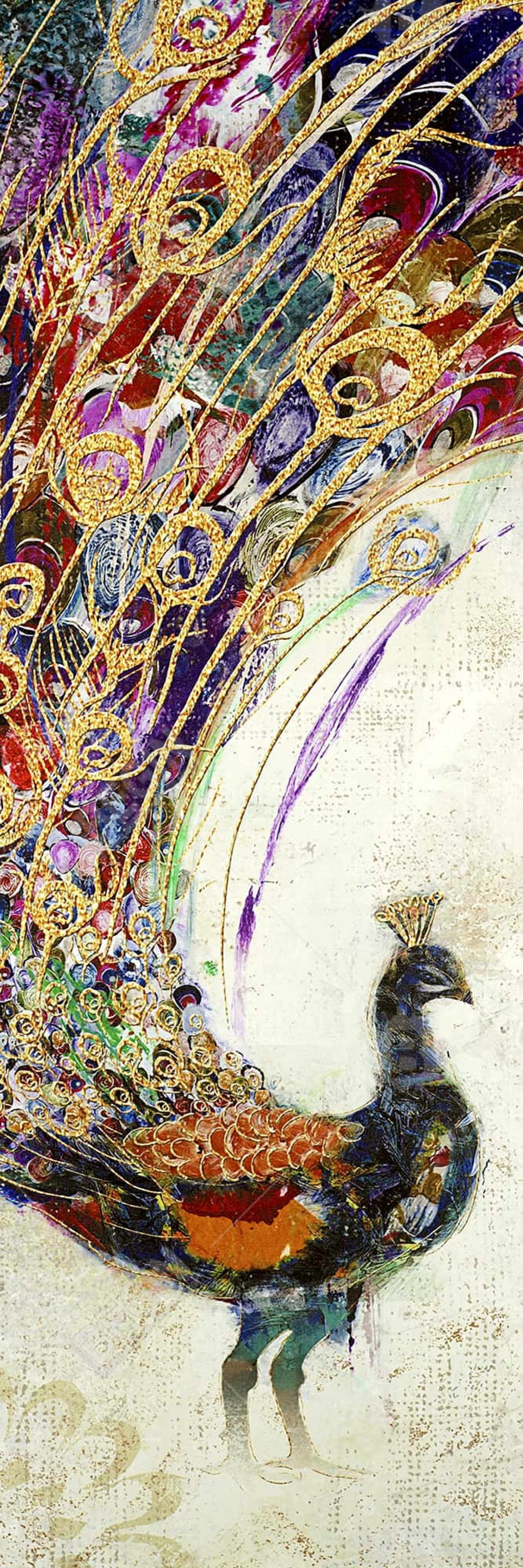 Peacock with Gold Feathers Canvas - Orange Animal Decor
