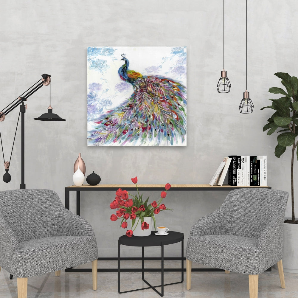 Majestic Peacock Canvas - Blue Floral Home Decor Artwork