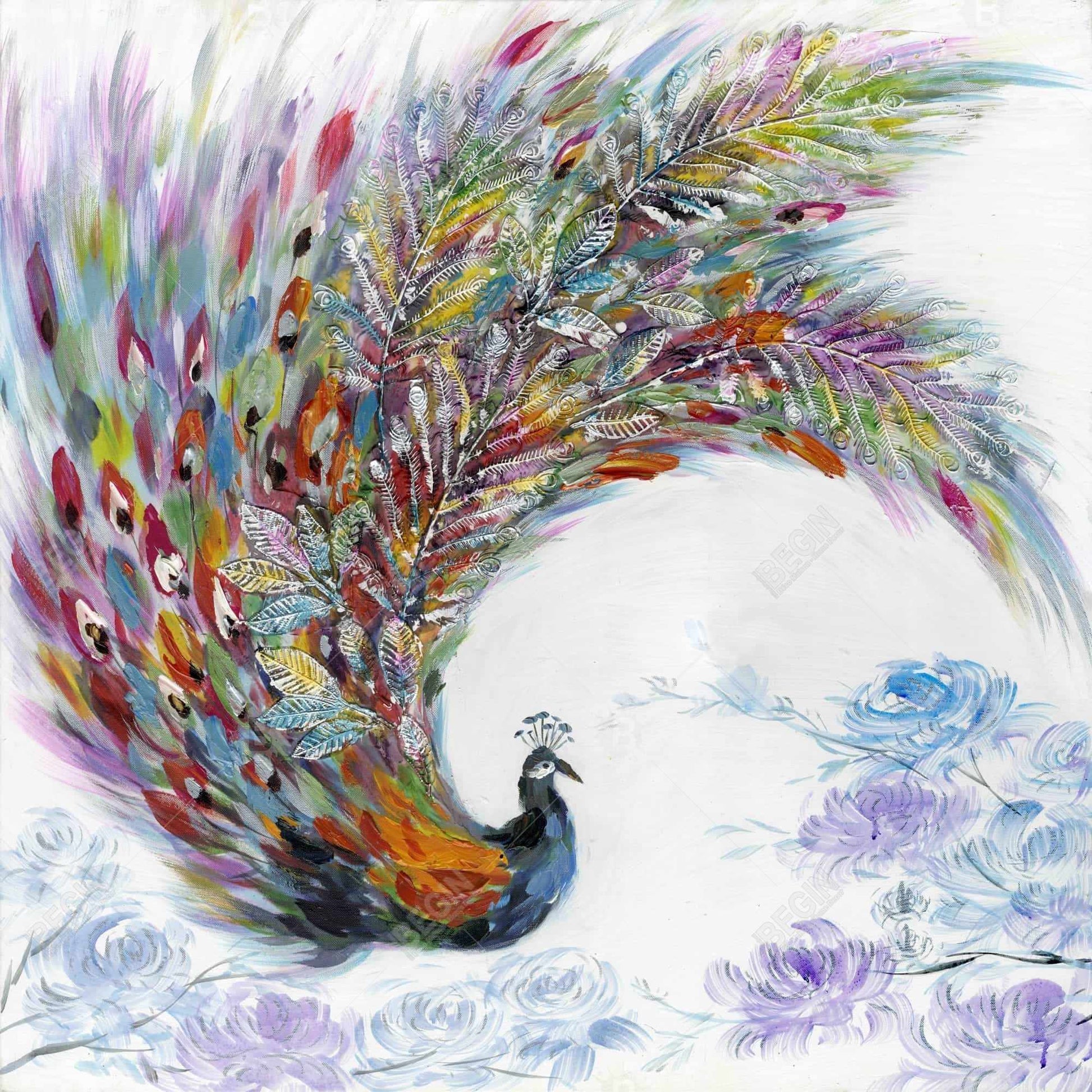 Colorful Peacock with Flowers Canvas - Modern Bedroom Decor