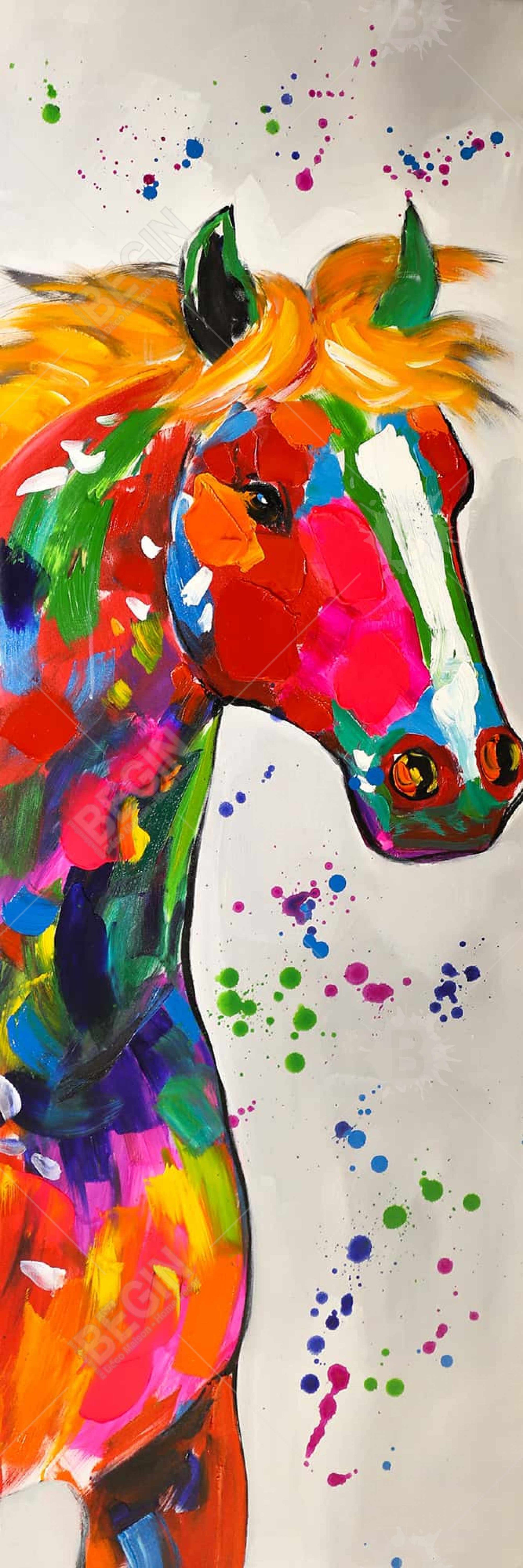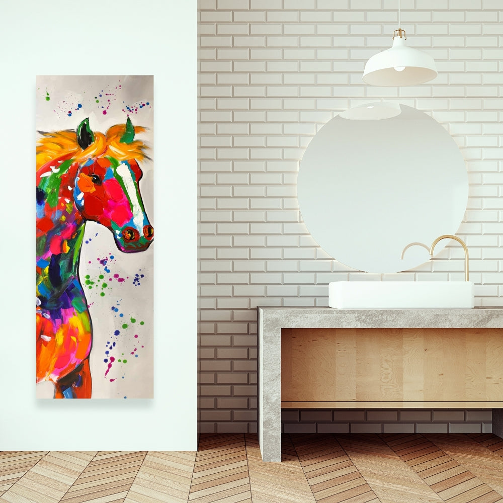 Enhance your home decor with the Abstract Colorful Horse with Paint Splash Contemporary Canvas. This vibrant artwork features a mesmerizing horse design, bursting with an array of vivid colors and dynamic paint splashes. Ideal for animal lovers and art enthusiasts, this canvas captures the wild spirit and grace of horses, creating a striking focal point in any room. Perfect for living rooms, bedrooms, or offices, this piece adds a touch of modern elegance and energy to your space. The high-quality canvas ensures durability and a lasting impression, while the unique abstract style offers a fresh and innovative take on traditional animal art. Easy to hang and versatile, it complements a variety of interior styles, from rustic farmhouse to chic contemporary. Transform your walls with this stunning abstract horse canvas and enjoy the lively atmosphere it brings. Buy now for a colorful home upgrade.
