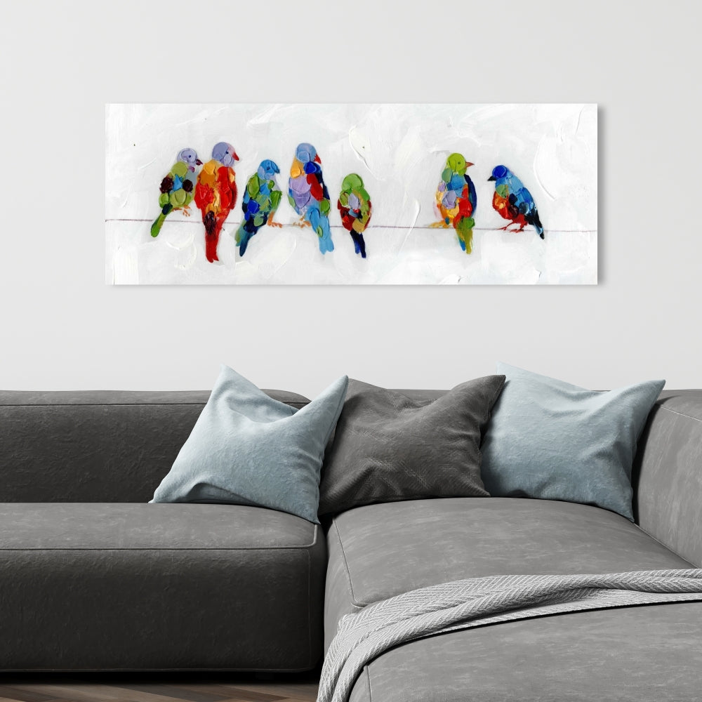 Colorful Birds on a Wire Canvas - Blue Animals Home Decor