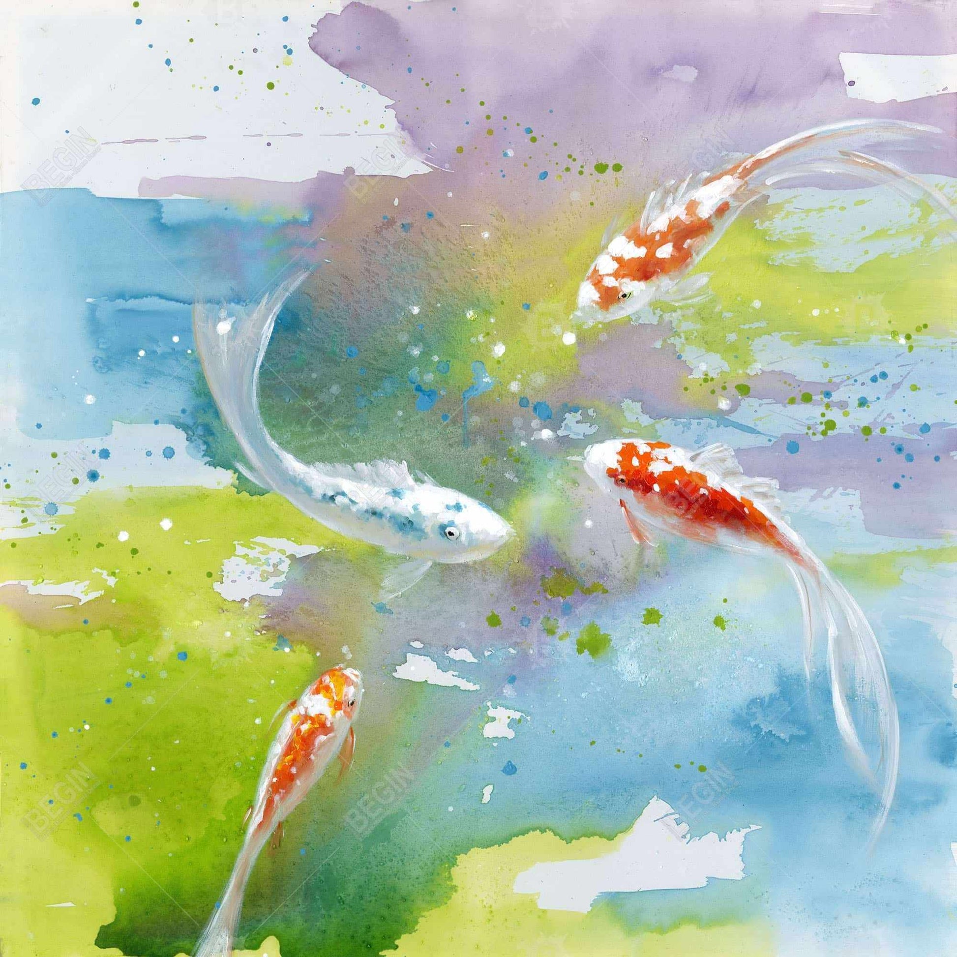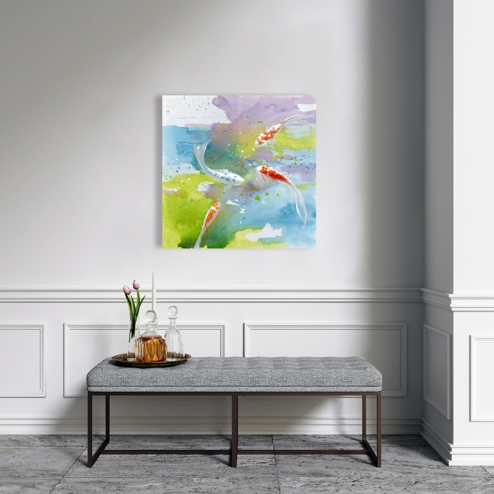 Koi Fish Canvas - Blue Animals Bedroom Decor | Colorful Water
