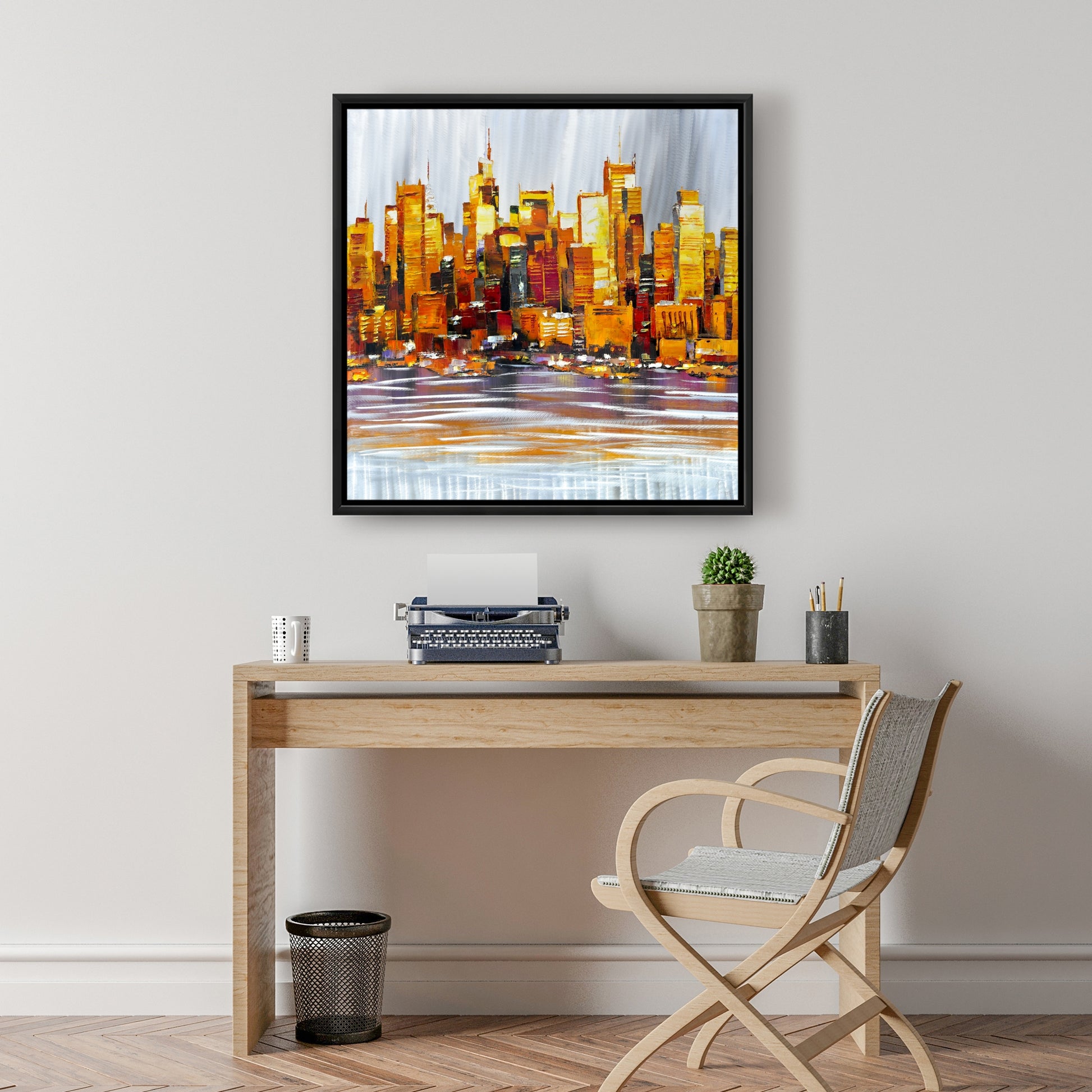 Orange Buildings Framed Canvas | Modern Bedroom Wall Decor