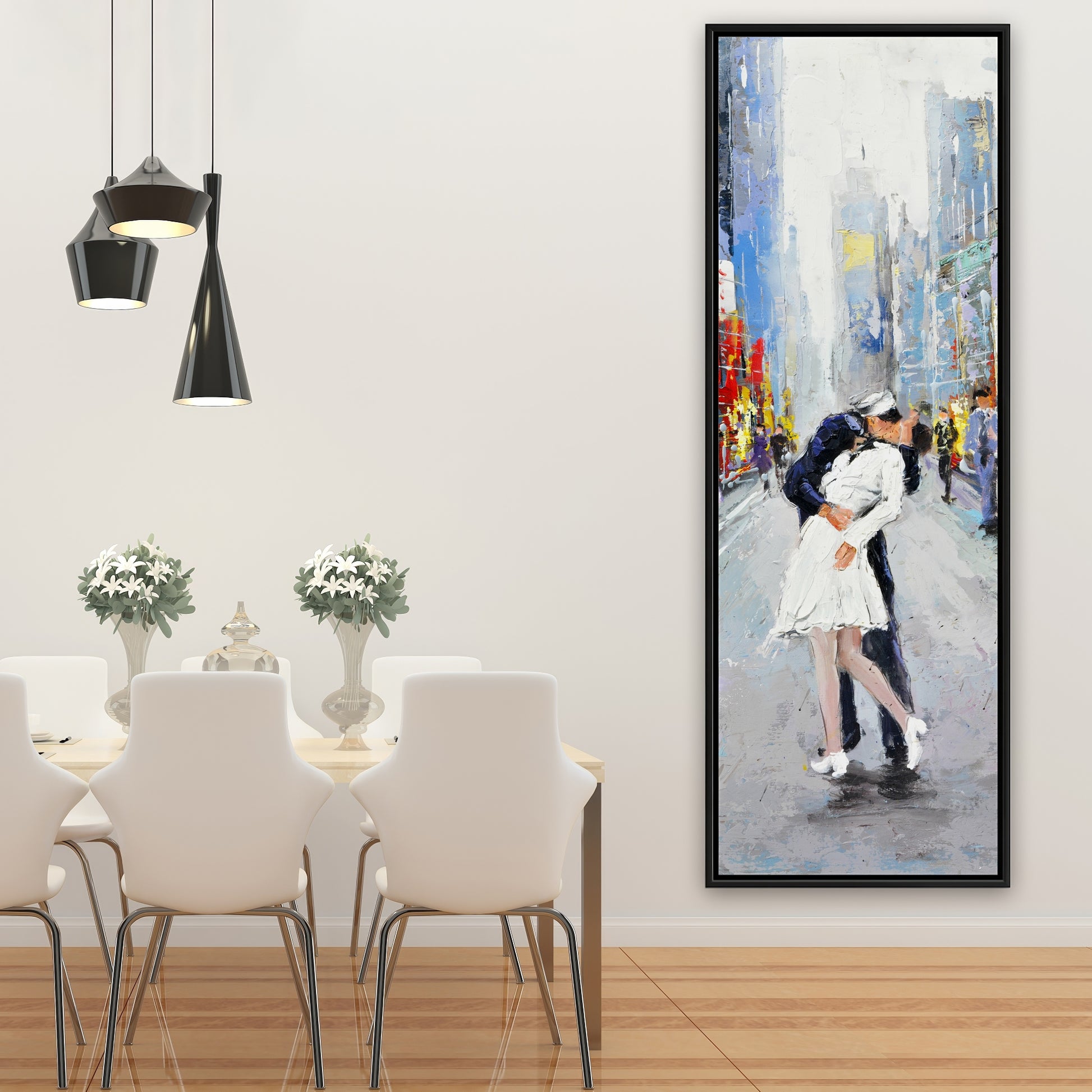 Enhance your home decor with our Blue Bedroom Building Framed Canvas featuring the iconic "Kiss of Times Square." This captivating artwork captures the timeless romance and bustling energy of New York City, making it a perfect addition to any modern or classic bedroom setting. The high-quality framed canvas showcases a striking blue-toned backdrop that complements the dynamic black and white image of the famed embrace. Ideal for creating a serene yet vibrant atmosphere, this piece effortlessly blends with various interior styles. Its durable construction ensures lasting beauty, while the ready-to-hang design offers hassle-free installation. Perfect for art lovers and city enthusiasts alike, this framed canvas serves as a stunning focal point that sparks conversation and admiration. Transform your space with this elegant tribute to a historic moment, and let the allure of Times Square bring a touch of nostalgia and sophistication to your bedroom decor.