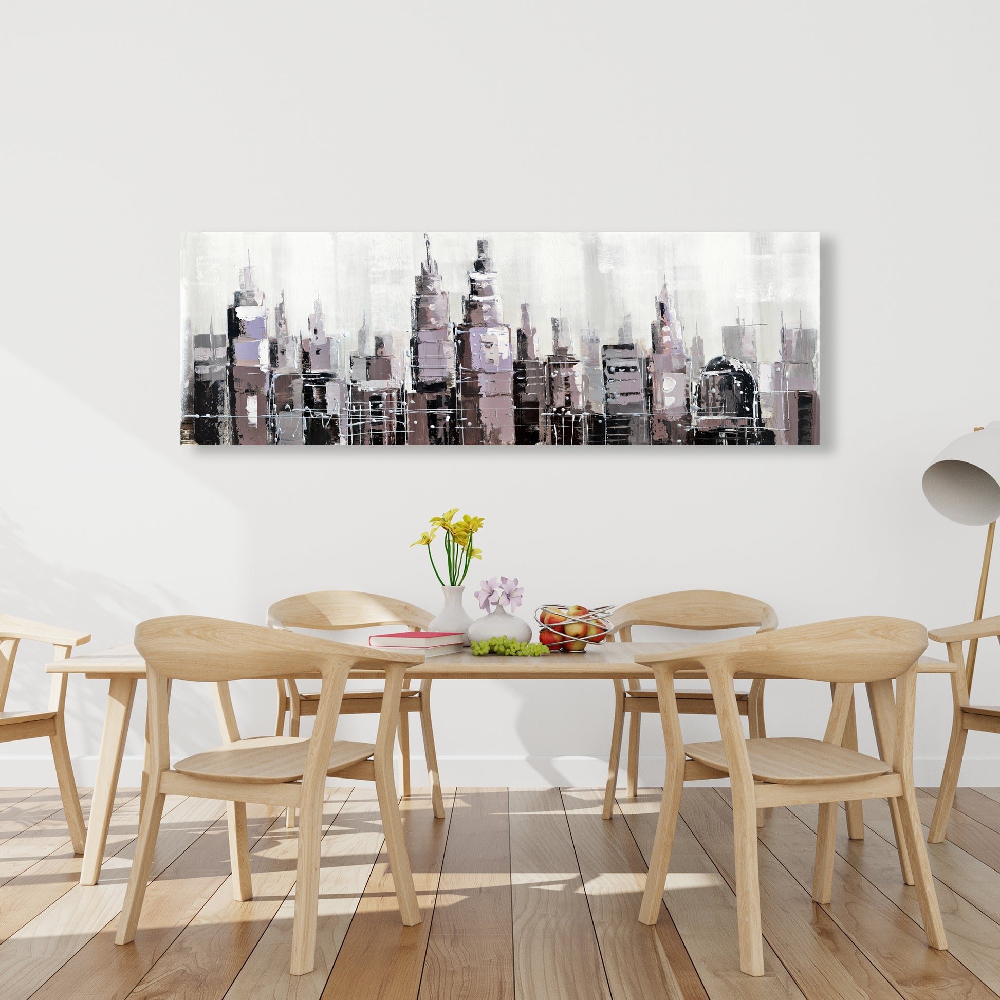 Abstract Grayscale Cityscape Canvas - White Bedroom Wall Art