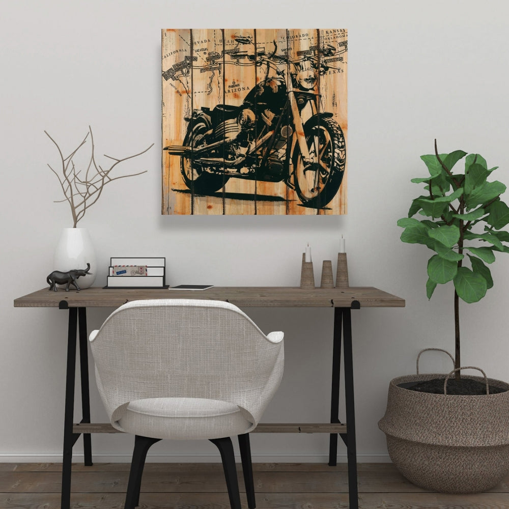 Motorcycle on Wood Background Canvas | Man Cave Home Decor