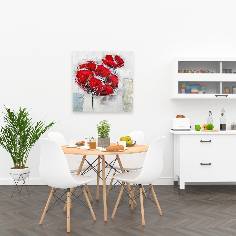 Modern Botanical Canvas | Abstract Textured Red Flowers Decor