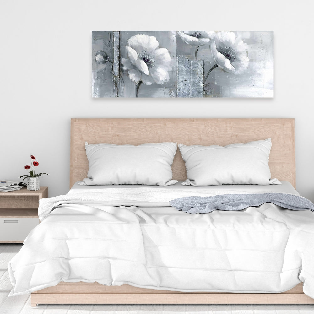 Gray & White Flowers Canvas - Floral Botanical Bedroom Decor
