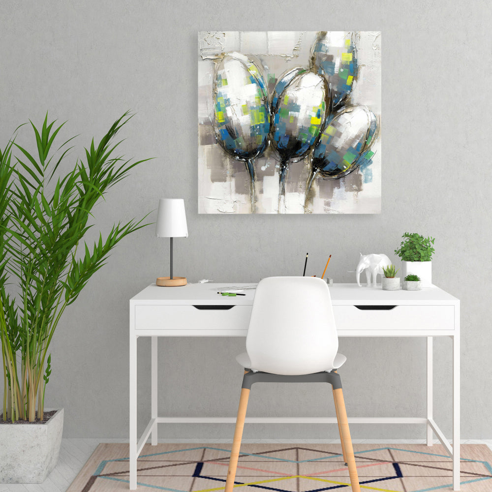 Industrial Blue Tulips Canvas | Abstract Bedroom Wall Art