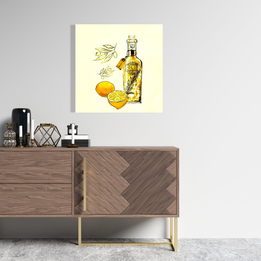 Olive Oil & Lemons Canvas | Illustrative Home Decor Art