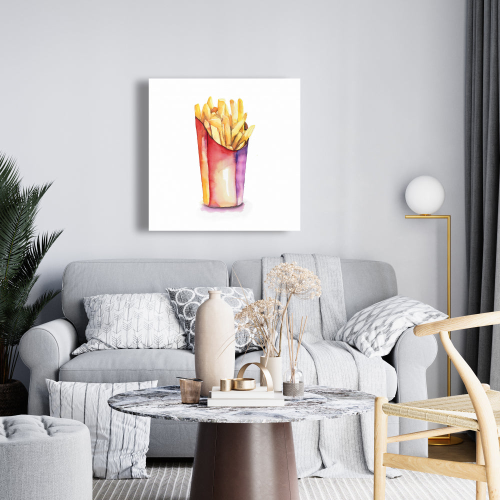 Yellow Watercolor French Fries Canvas | Home Decor Art