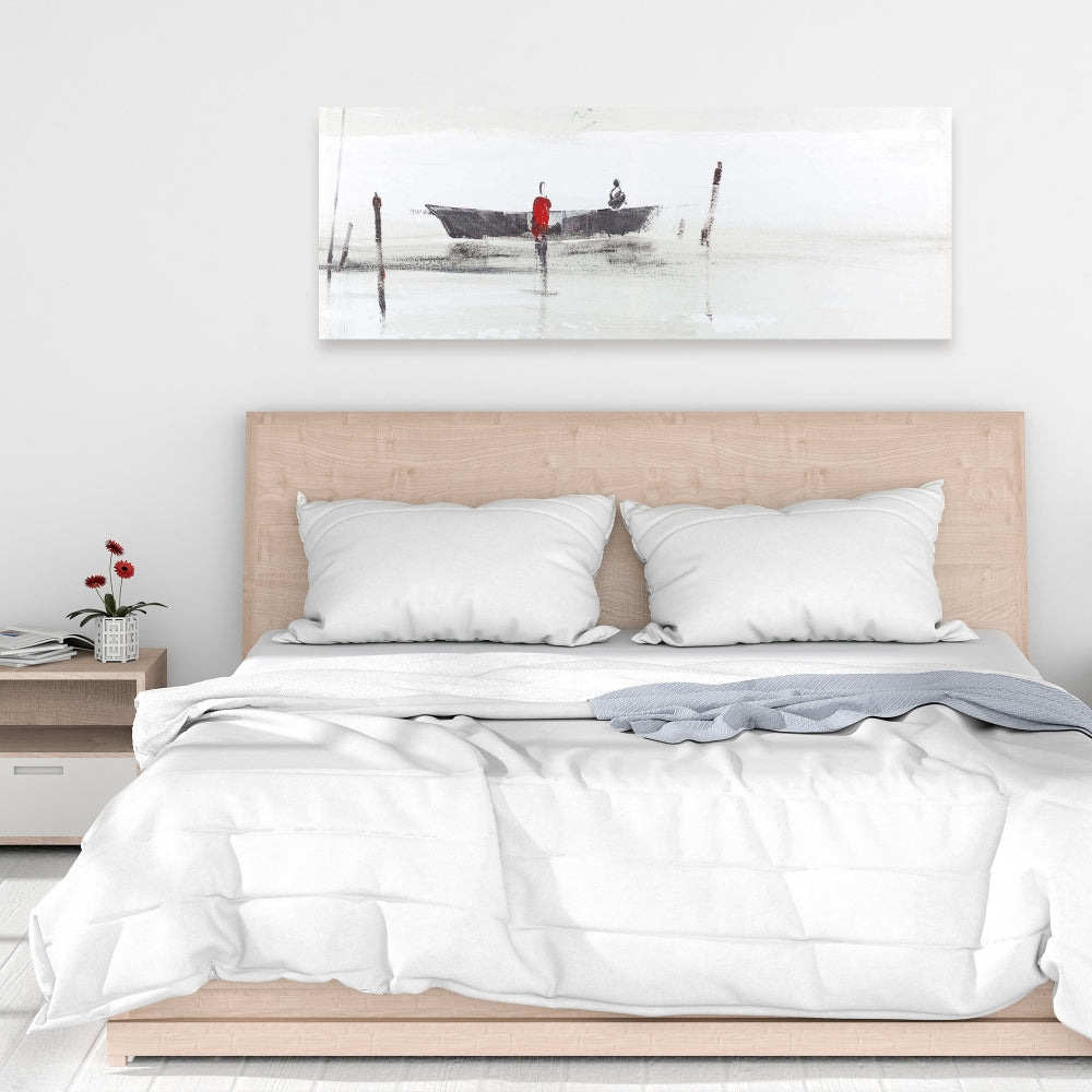 Gray Minimalist Boat on Lake Canvas | Bedroom Wall Art Decor
