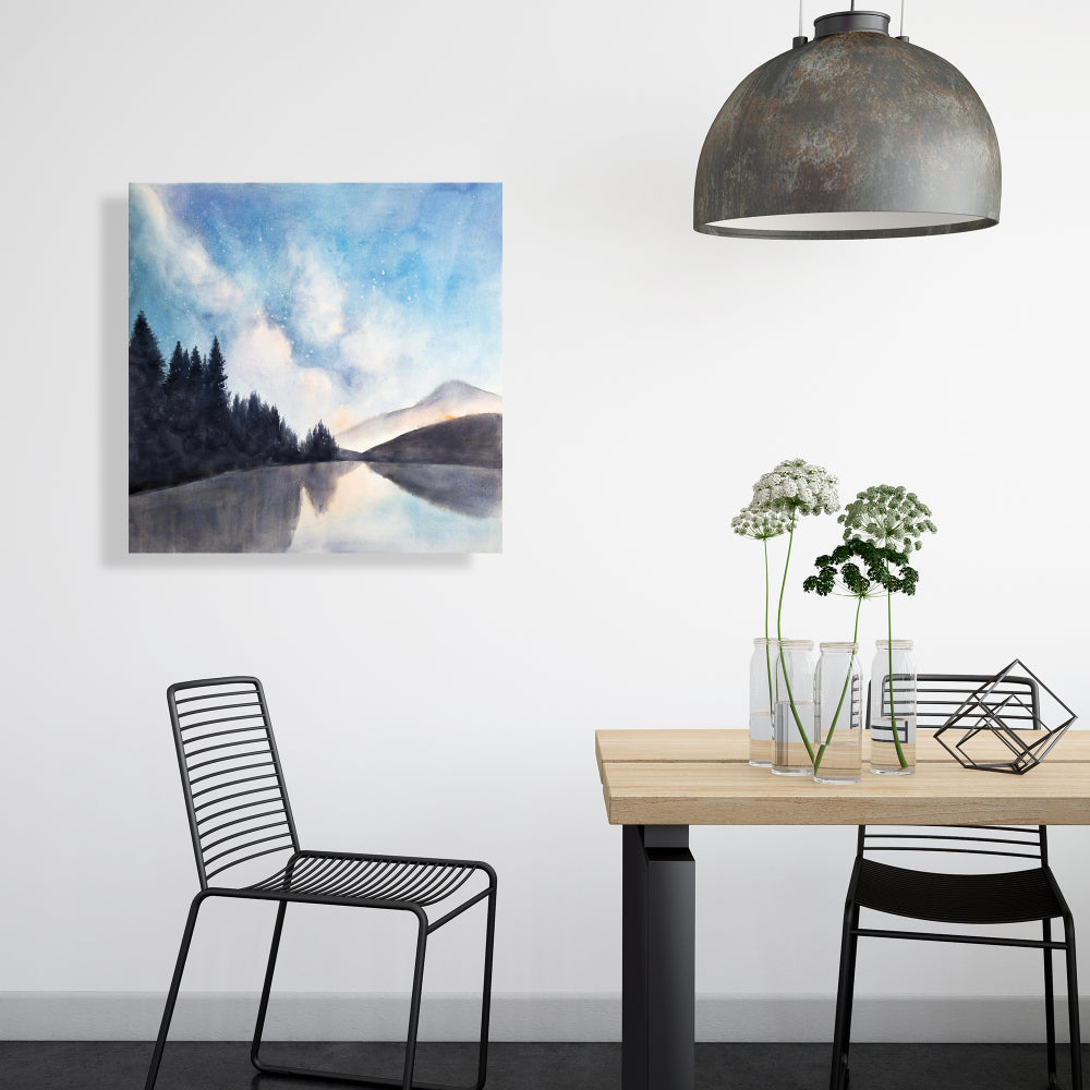 Transform your living space with the enchanting Lakeview by Night landscapes illustrative blue canvas. This captivating artwork beautifully captures the serene allure of a moonlit lake, featuring deep blue tones and intricate details that evoke a sense of tranquility and elegance. Perfect for home decor, this canvas adds a touch of sophistication to any room, making it an ideal centerpiece for your living room, bedroom, or office. Crafted with high-quality materials, this durable canvas ensures vibrant colors and a polished finish that enhances its visual appeal. The calming hues and serene landscape make it a versatile piece, seamlessly blending with various interior styles, from modern minimalist to classic elegance. Elevate your decor with this stunning work of art that invites relaxation and reflection, while serving as a conversation starter for guests. Whether you're an art enthusiast or seeking the perfect gift, the Lakeview by Night canvas is a timeless addition to any art collection. Bring the beauty of nature indoors and experience the peaceful ambiance this exquisite landscape provides. Ideal for those who appreciate fine art and wish to create a soothing atmosphere in their home.