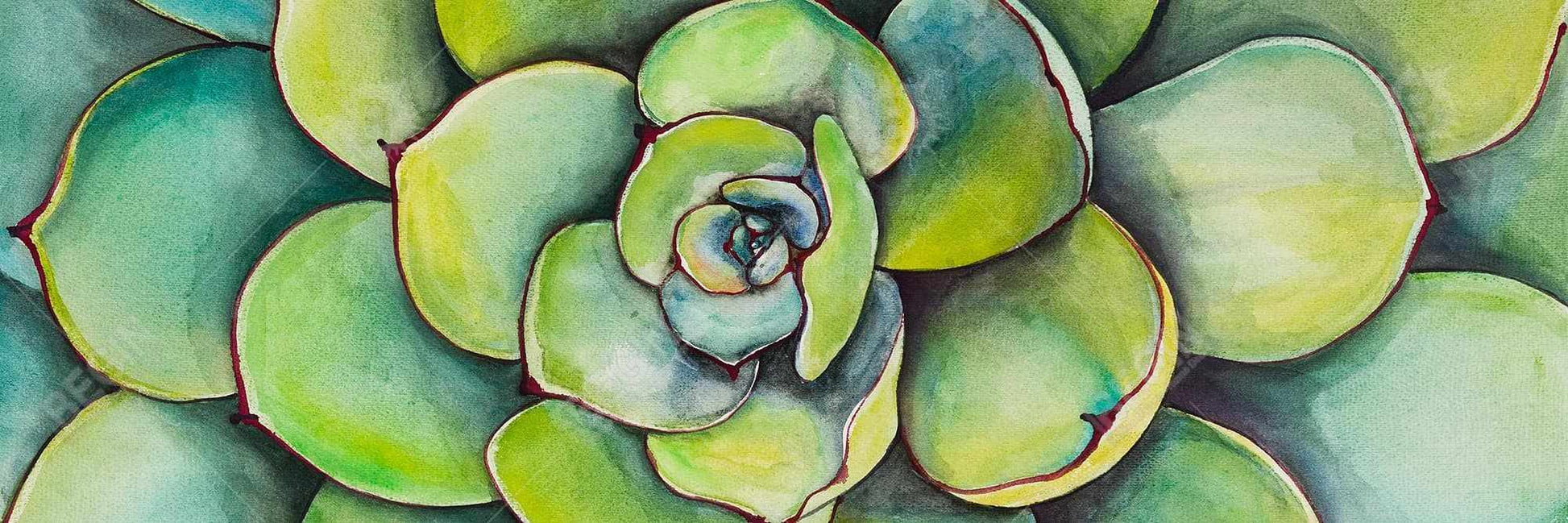 Watercolor Succulent Plant | Cactus Floral Green Canvas Art