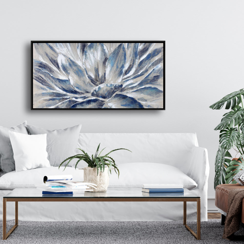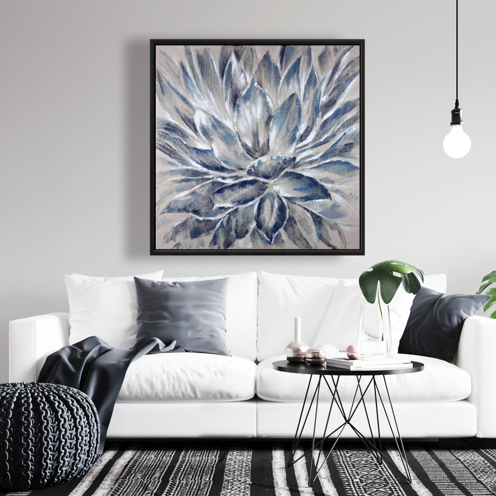 Enhance your home decor with our Floral & Botanical Contemporary Bedroom Framed Canvas of "Blue and Gray Flower". This exquisite piece features a stunning blend of blue and gray hues, perfect for adding a touch of elegance and tranquility to your bedroom. The modern design complements various interior styles, making it a versatile addition to any space. Crafted with high-quality materials, this canvas offers a premium look and long-lasting durability. Ideal for those seeking a serene and sophisticated ambiance, this artwork effortlessly elevates your room's aesthetic. Easy to hang and maintain, it makes a perfect gift or a stylish update to your home decor collection. Transform your bedroom into a peaceful retreat with this beautiful "Blue and Gray Flower" canvas.