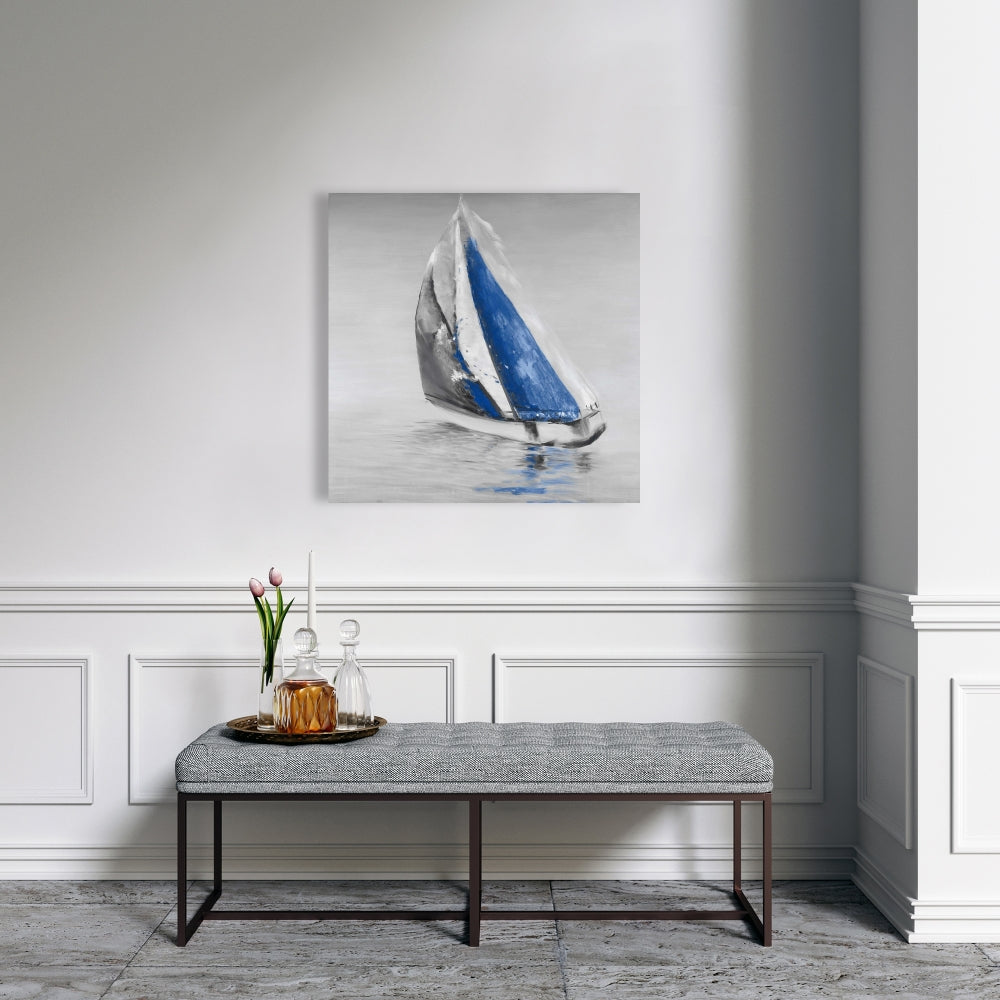 Gray and Blue Boat Sailing Canvas | Bedroom Marine Decor