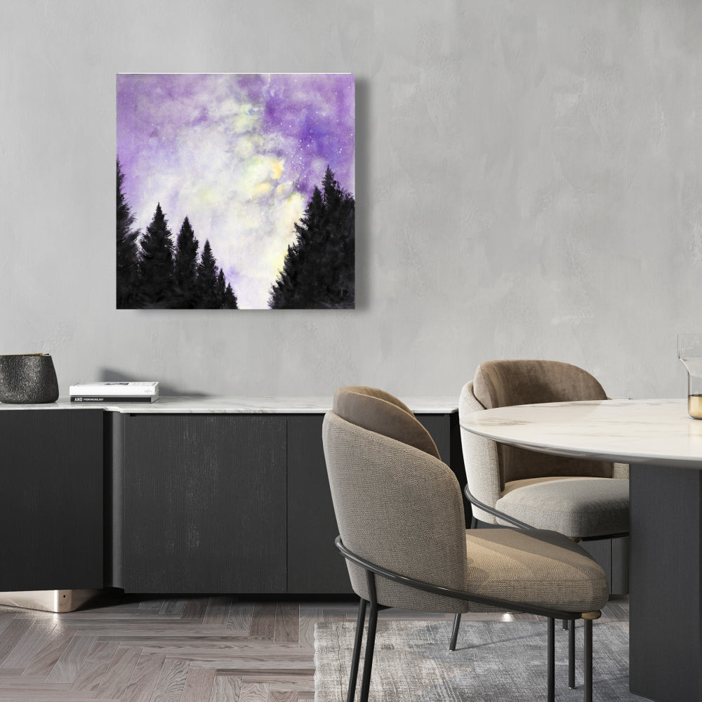 Purple Starry Sky Canvas | Purple Trees Landscapes Decor