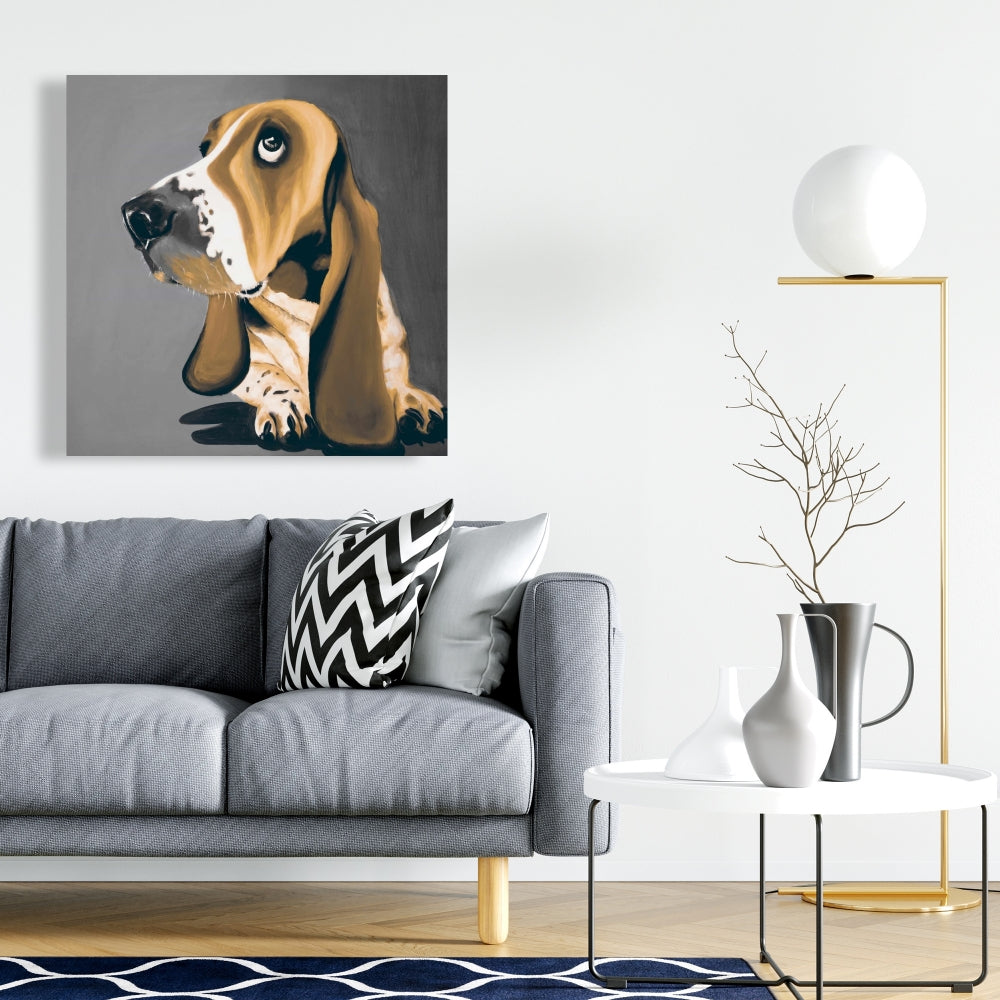 Gold Basset Hound Dog Canvas | Modern Home Decor Wall Art