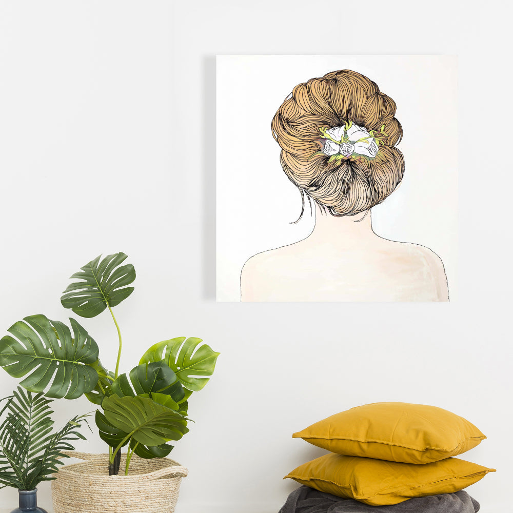 Enhance your home decor with the elegant Beauty Figurative Beige Canvas titled Lady with Flowers in Her Blondy Hair. This exquisite artwork captures the serene beauty of a woman adorned with vibrant flowers in her golden locks, creating a harmonious blend of nature and grace. Perfect for living rooms, bedrooms, or hallways, this canvas adds a touch of sophistication and warmth to any space. Crafted with high-quality materials, the muted beige background complements a variety of interior styles, from modern to classic. The delicate details and soft color palette make it a timeless piece that invites tranquility and inspiration. Easy to hang and maintain, this canvas is an ideal gift for art lovers or a stunning addition to your own collection. Transform your walls into a captivating gallery with this enchanting beauty figurative canvas that celebrates femininity and floral elegance.