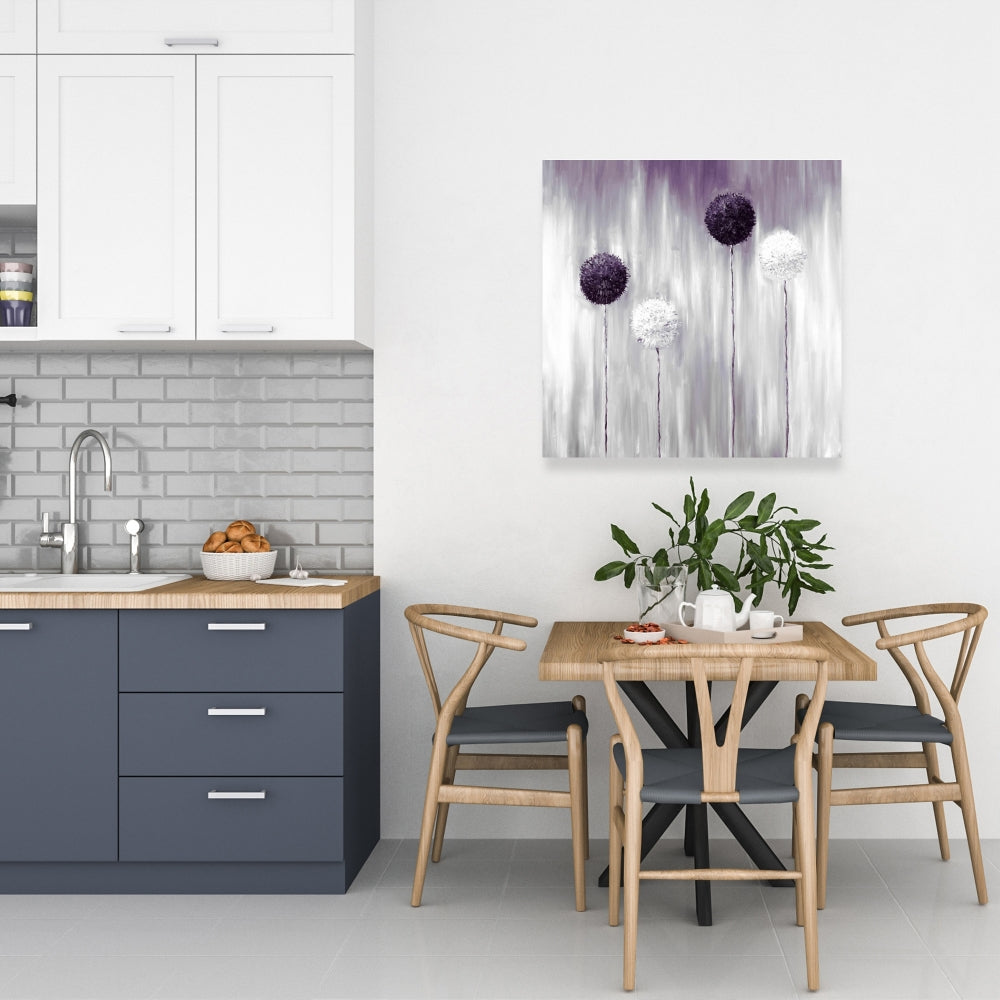 Enhance your home decor with the Floral & Botanical Contemporary Gray Canvas featuring stunning purple allium flowers. This exquisite artwork brings a touch of elegance and modern sophistication to any space. The vibrant purple hues of the allium flowers contrast beautifully against the understated gray background, creating a striking visual appeal. Perfect for living rooms, bedrooms, or offices, this canvas art piece adds a pop of color while maintaining a chic, contemporary vibe. Expertly crafted, the high-quality canvas ensures long-lasting durability and a gallery-like finish. Easy to hang, this floral canvas transforms your walls into a captivating focal point. Ideal for nature lovers and art enthusiasts, the Purple Allium Flowers Canvas is a must-have for those seeking to elevate their interior design. Embrace the beauty of nature with this unique floral artwork and create a serene, stylish ambiance in your home. Order now and experience the perfect blend of art and modern decor with this stunning floral canvas.