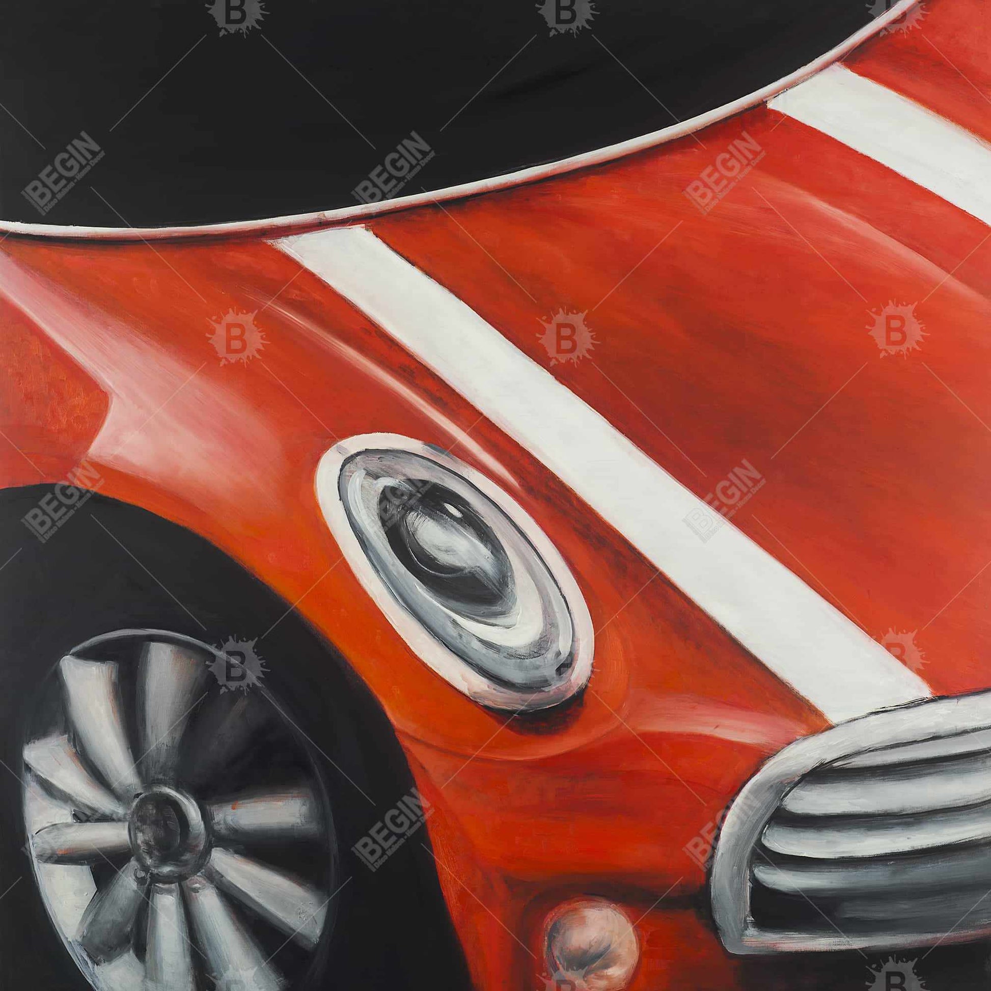 Red Car Canvas - Closeup with White Stripes | Home Decor Art