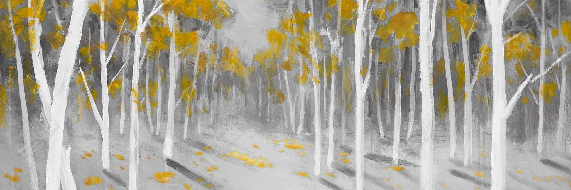 Yellow Birch Forest Gray Bedroom Canvas | Contemporary Decor