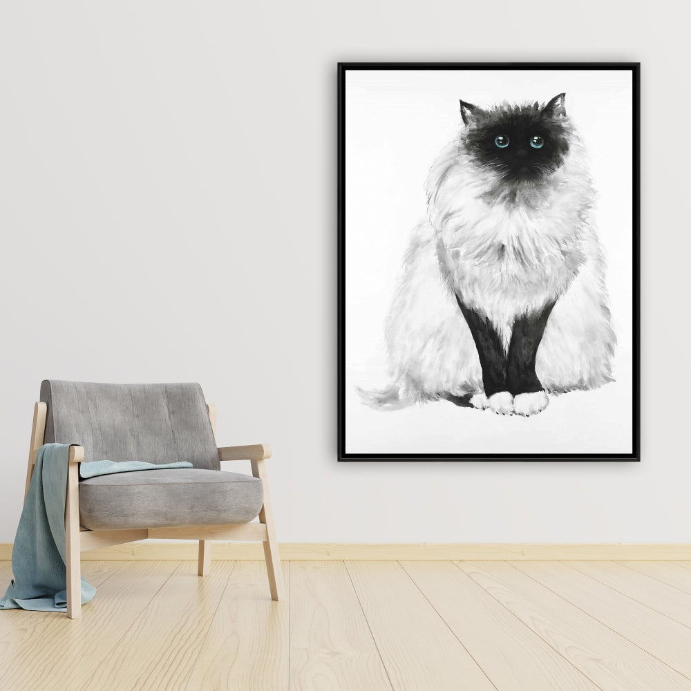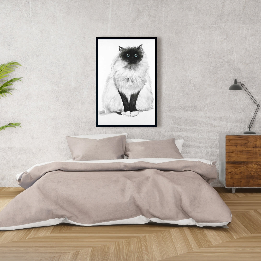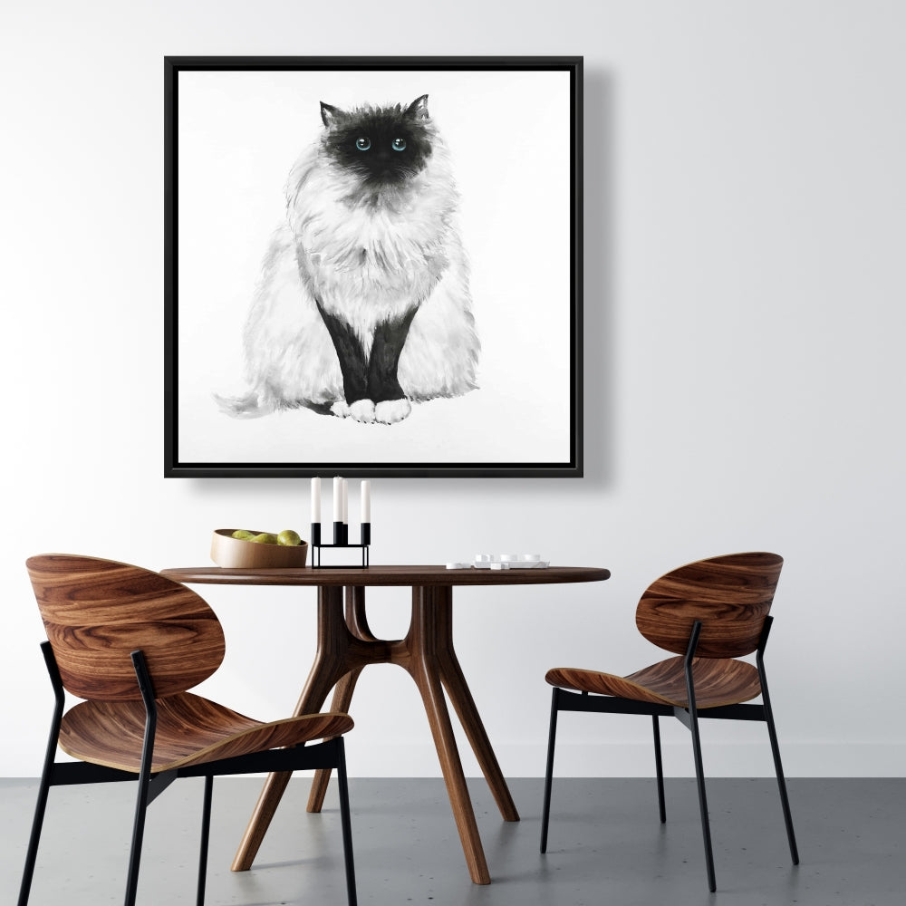 Blue Eyes Fluffy Siamese Cat Canvas | Minimalist Bedroom Decor
