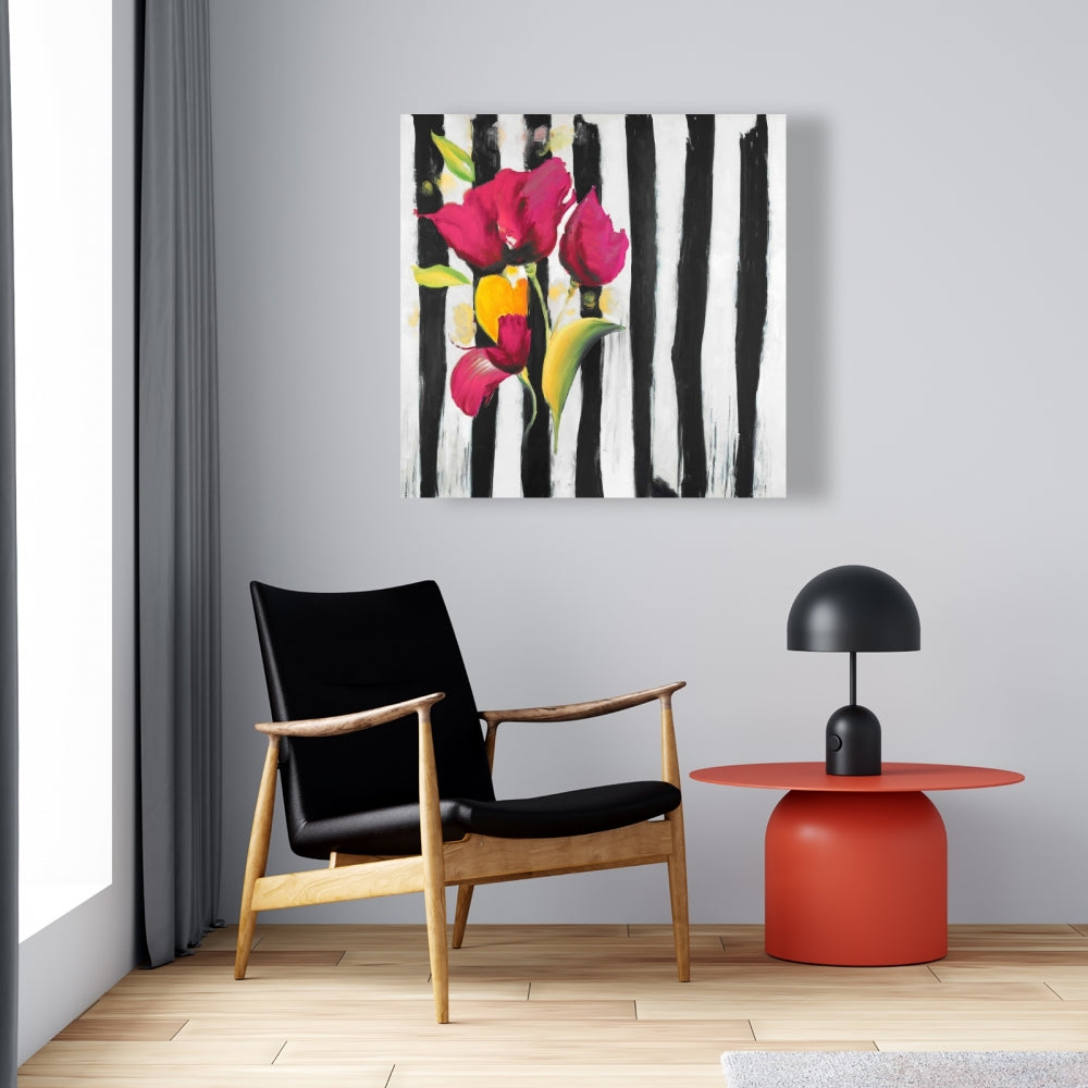Enhance your home decor with our stunning Illustrative Botanical Bedroom Canvas featuring Pink Flowers on Black Stripes. This exquisite piece combines vibrant pink blossoms with bold black stripes, creating a striking contrast that adds elegance and charm to any bedroom. Perfect for nature lovers, this canvas art captures the beauty of blooming flowers while offering a modern twist with its striped background. Ideal for contemporary and traditional interiors alike, this artwork brings a touch of sophistication and tranquility to your space. Crafted with high-quality materials, the canvas ensures durability and vivid color retention. Easy to hang and maintain, it's an effortless way to refresh your decor. Transform your bedroom into a serene oasis with this captivating botanical artwork. Perfect gift for art enthusiasts and those who appreciate unique home accents.