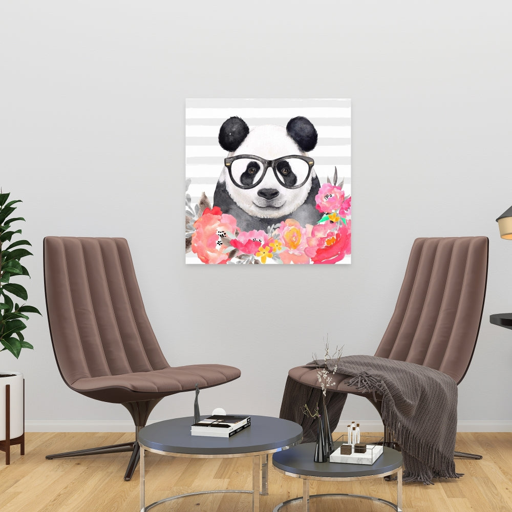 Panda with Glasses Flowers Canvas - Kids Room Art Decor