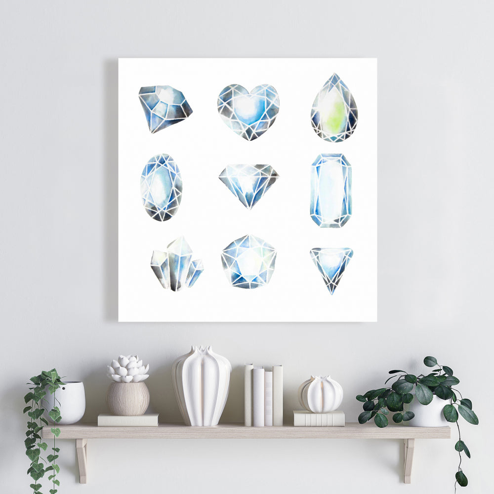 Minimalist Blue Canvas Crystals | Home Decor Bedroom Art