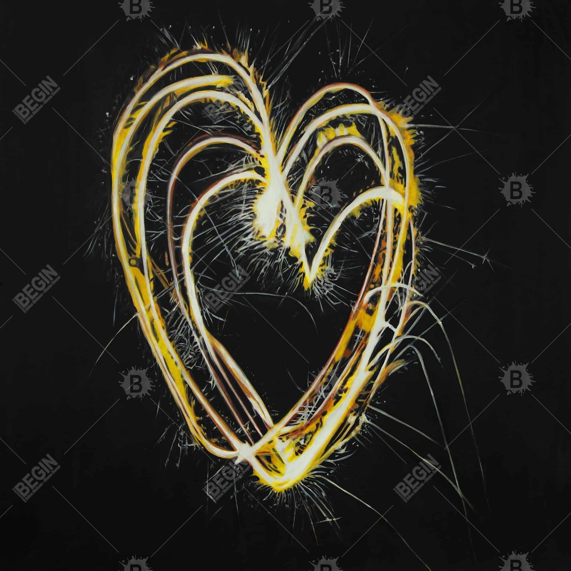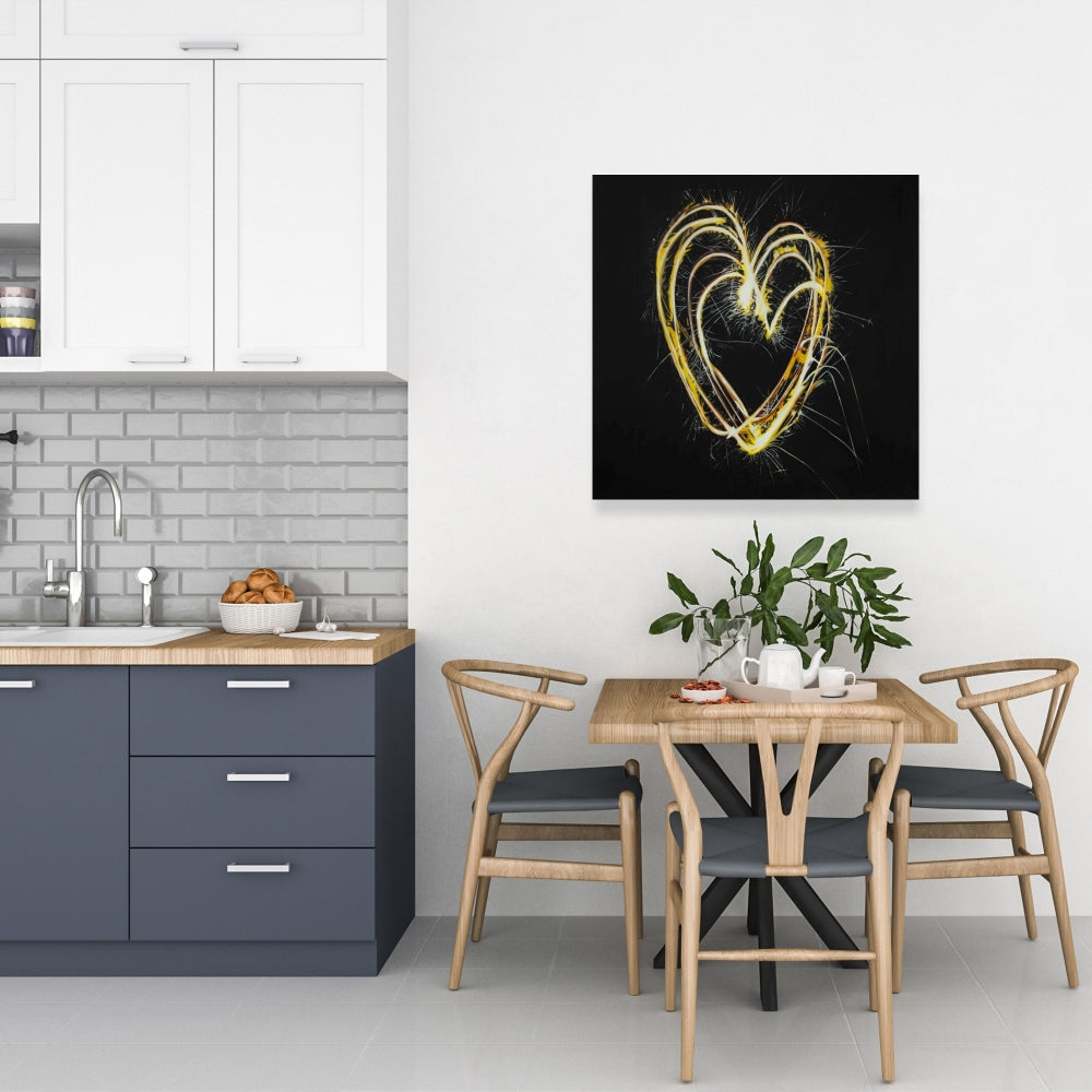 Retro Yellow Canvas Fireworks Heart | Home Decor Wall Art