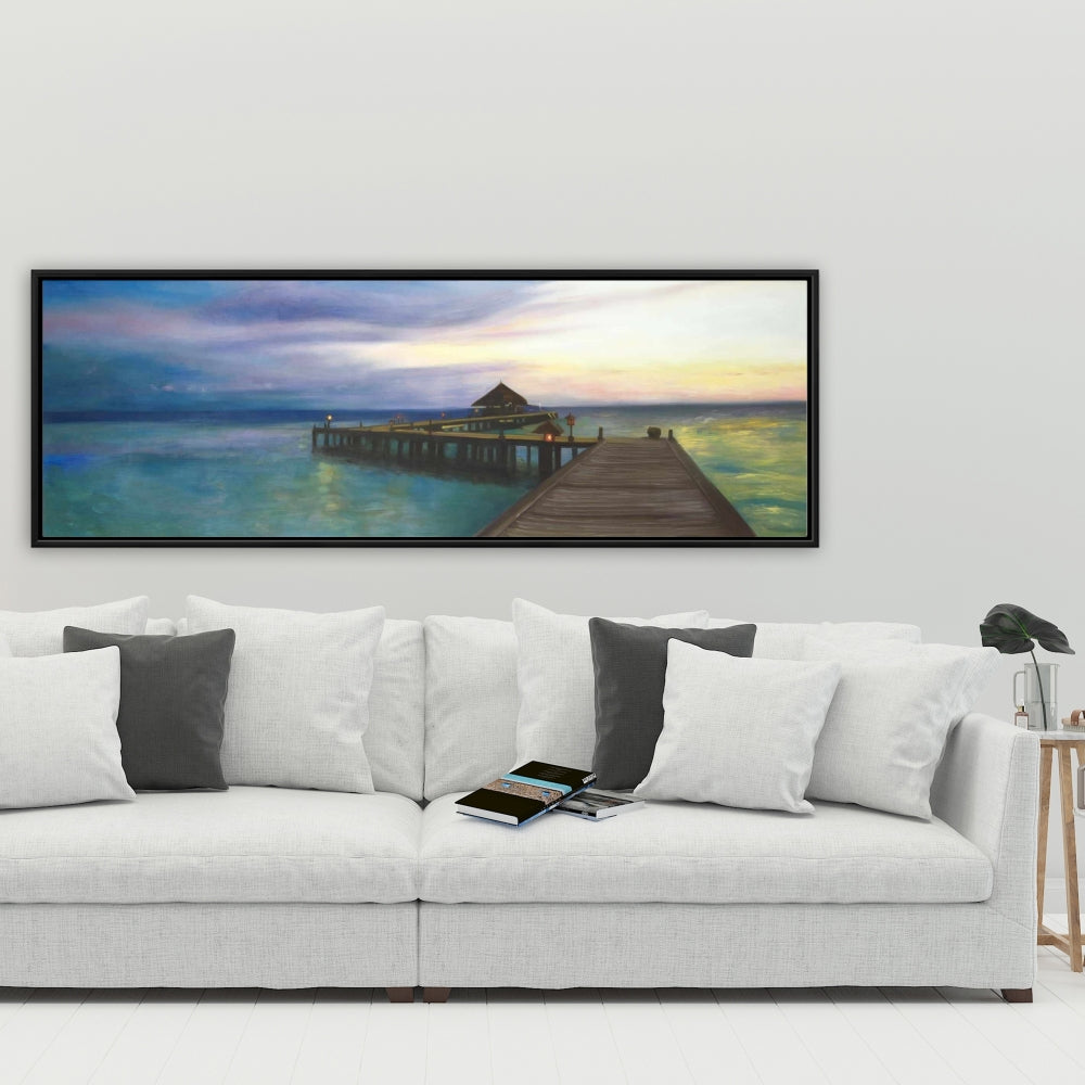 Boardwalk Sunset Canvas | Coastal Bedroom Blue Framed Decor