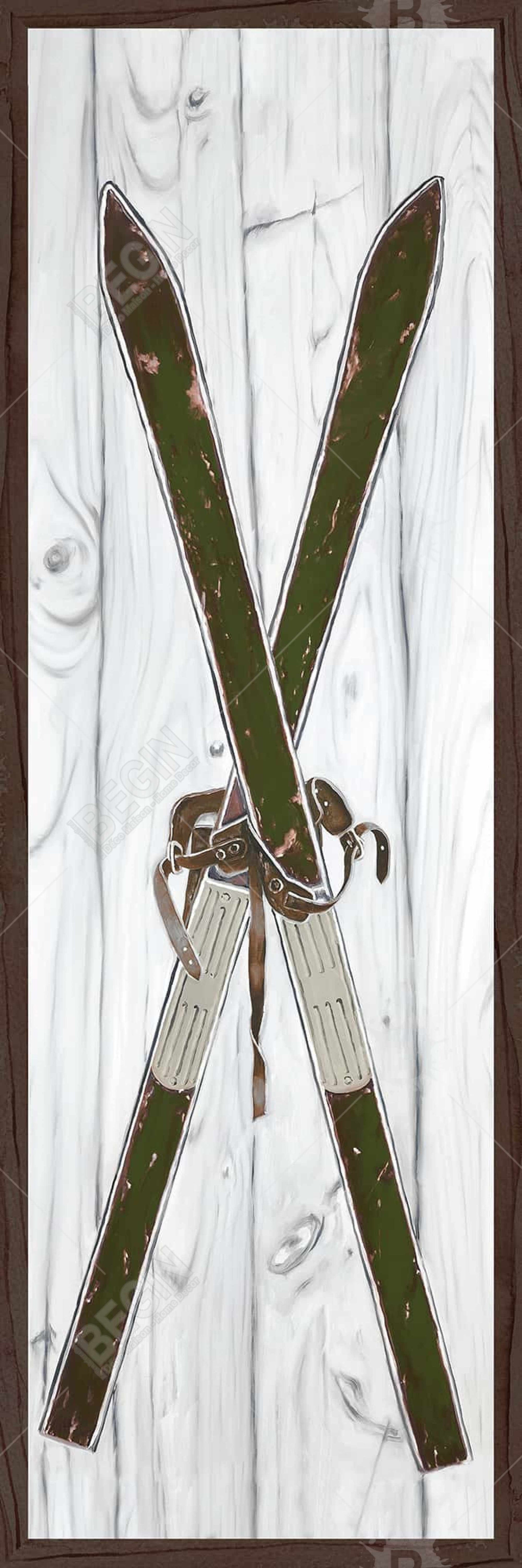Green Vintage Skis Framed Canvas | Sports Decor for Livingroom
