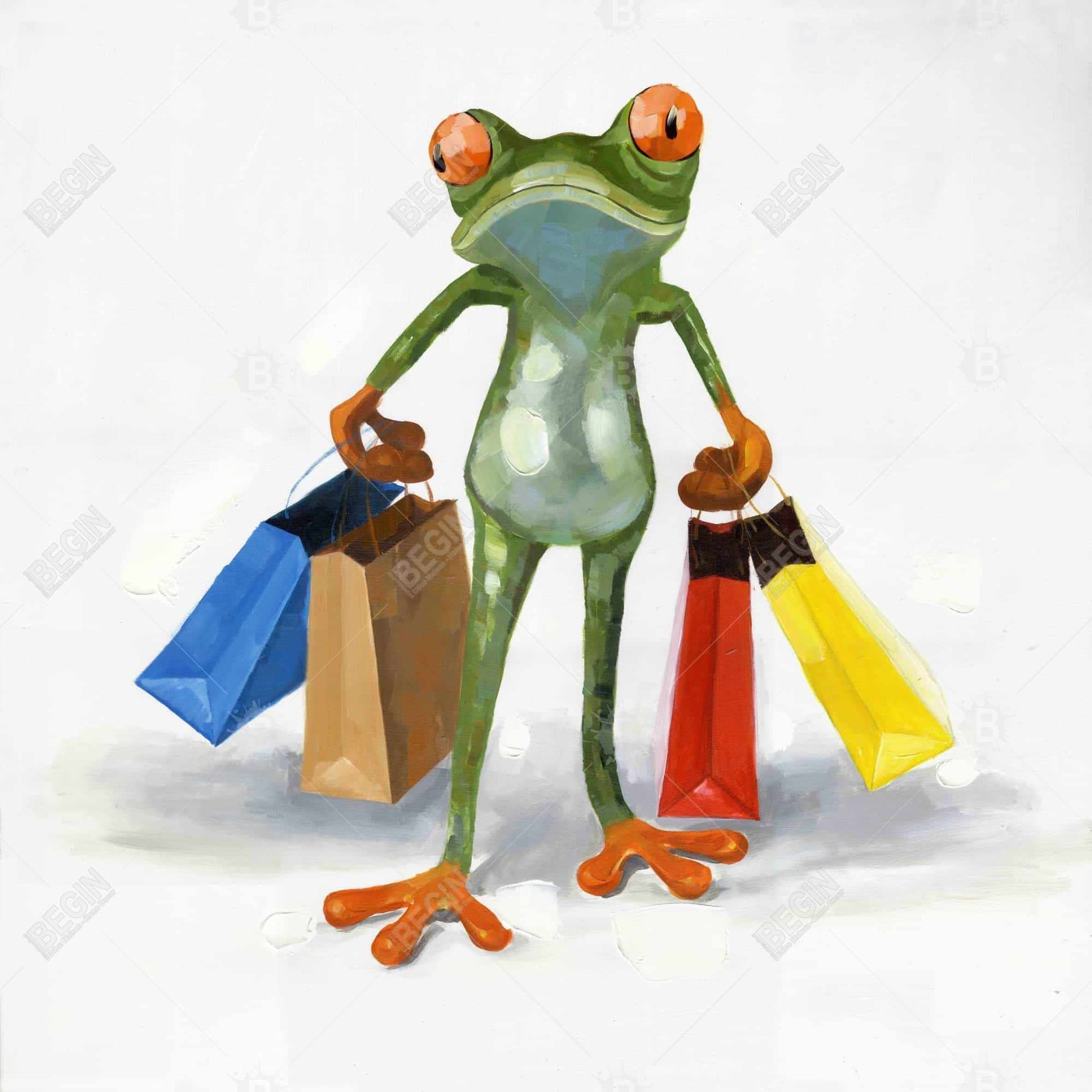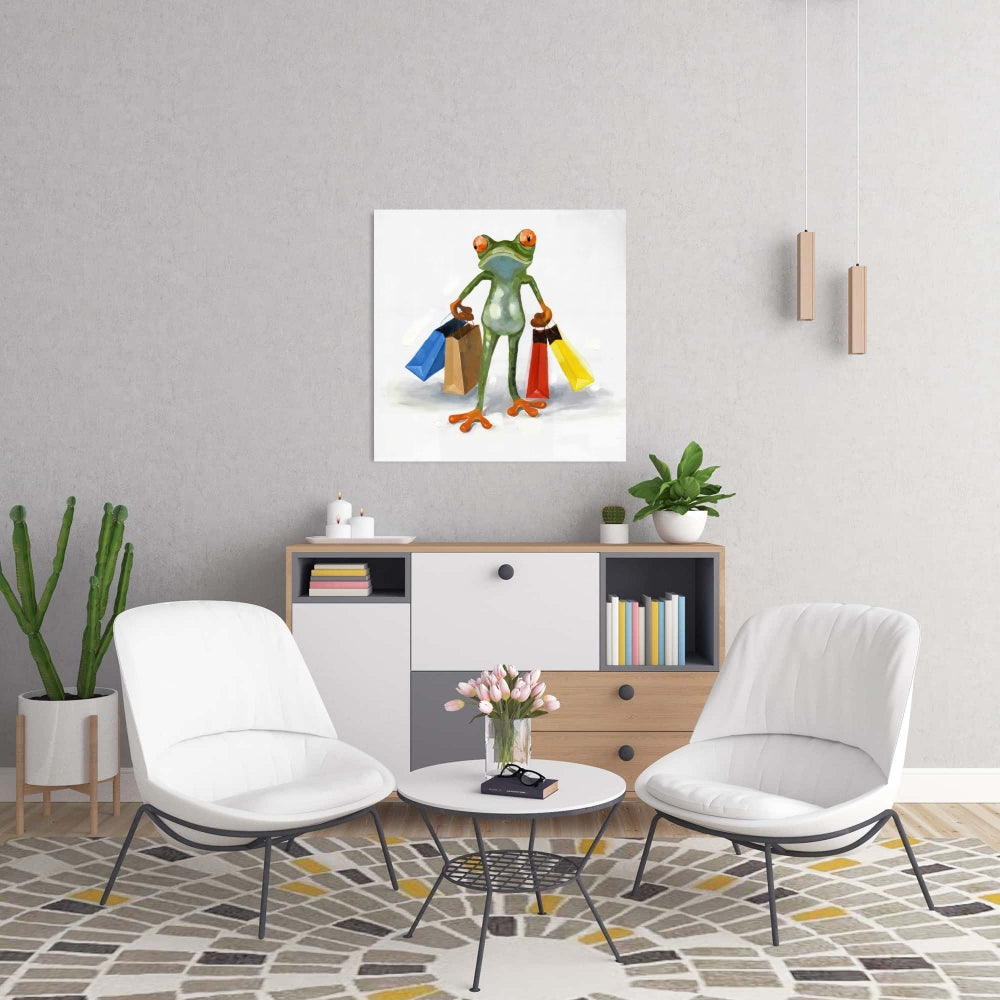 Enhance your home decor with our Blue Contemporary Canvas featuring the Funny Frog with Shopping Bags, a delightful aquatic animal artwork. This vibrant piece captures a playful frog adorned with colorful shopping bags, set against a calming blue backdrop. Perfect for adding a touch of whimsy and charm to any room, this canvas brings a smile to all who see it. Ideal for living rooms, bedrooms, or even a child's playroom, it effortlessly complements modern and eclectic styles. The high-quality canvas ensures durability and vivid colors that won't fade over time. Bring personality and joy to your space with this unique wall art. Perfect for frog enthusiasts and those who appreciate humorous art, this canvas also makes a great gift. Transform your home into a cheerful sanctuary with the Funny Frog with Shopping Bags canvas, a must-have for art lovers seeking something truly special.
