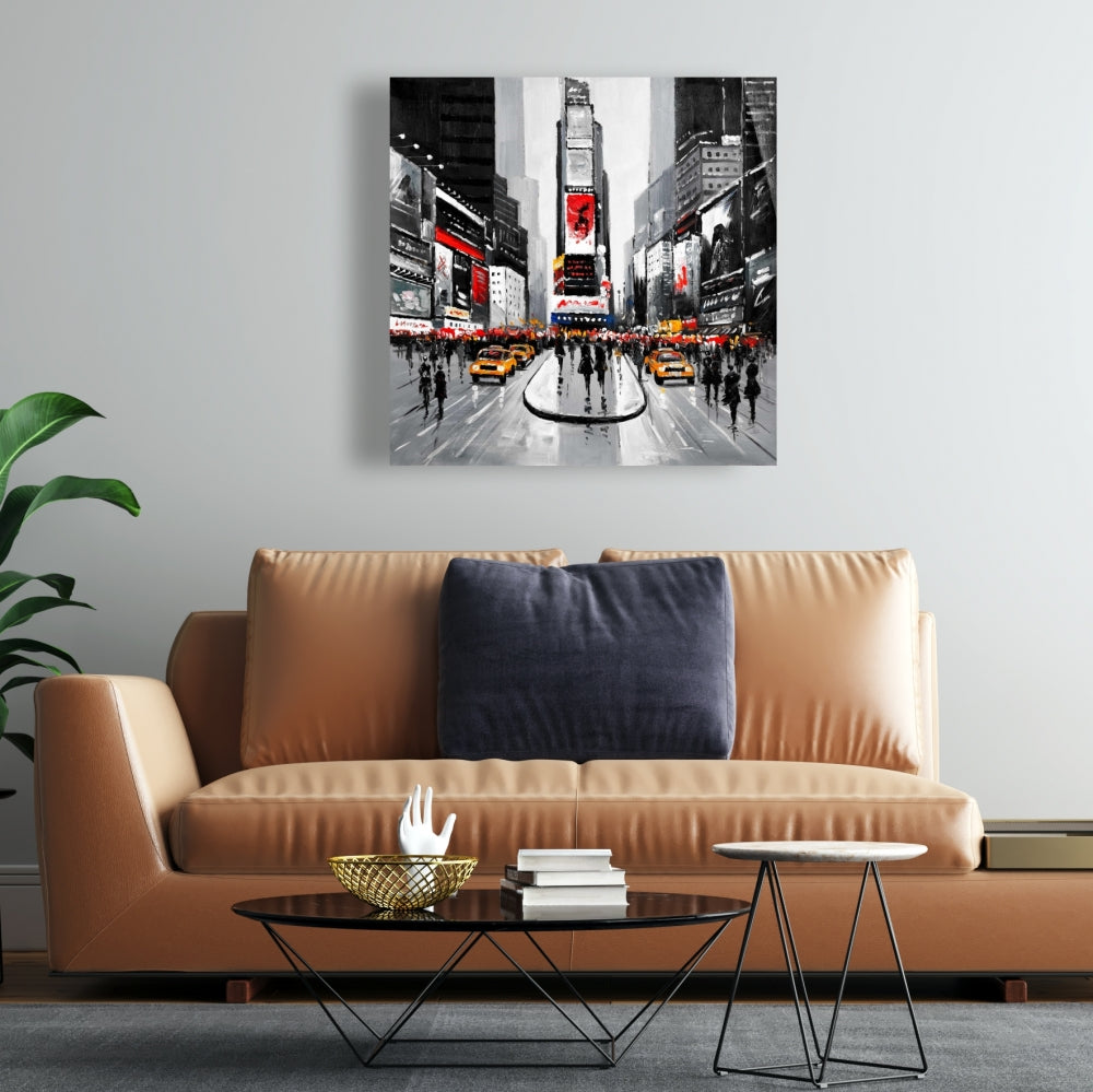 New York City Busy Street Gray Canvas - Contemporary Wall Art