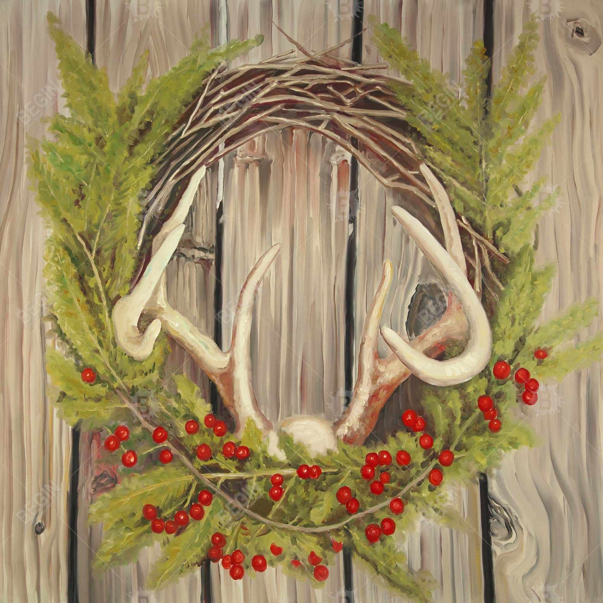 Rustic Botanical Canvas - Christmas Wreath with Panache Decor